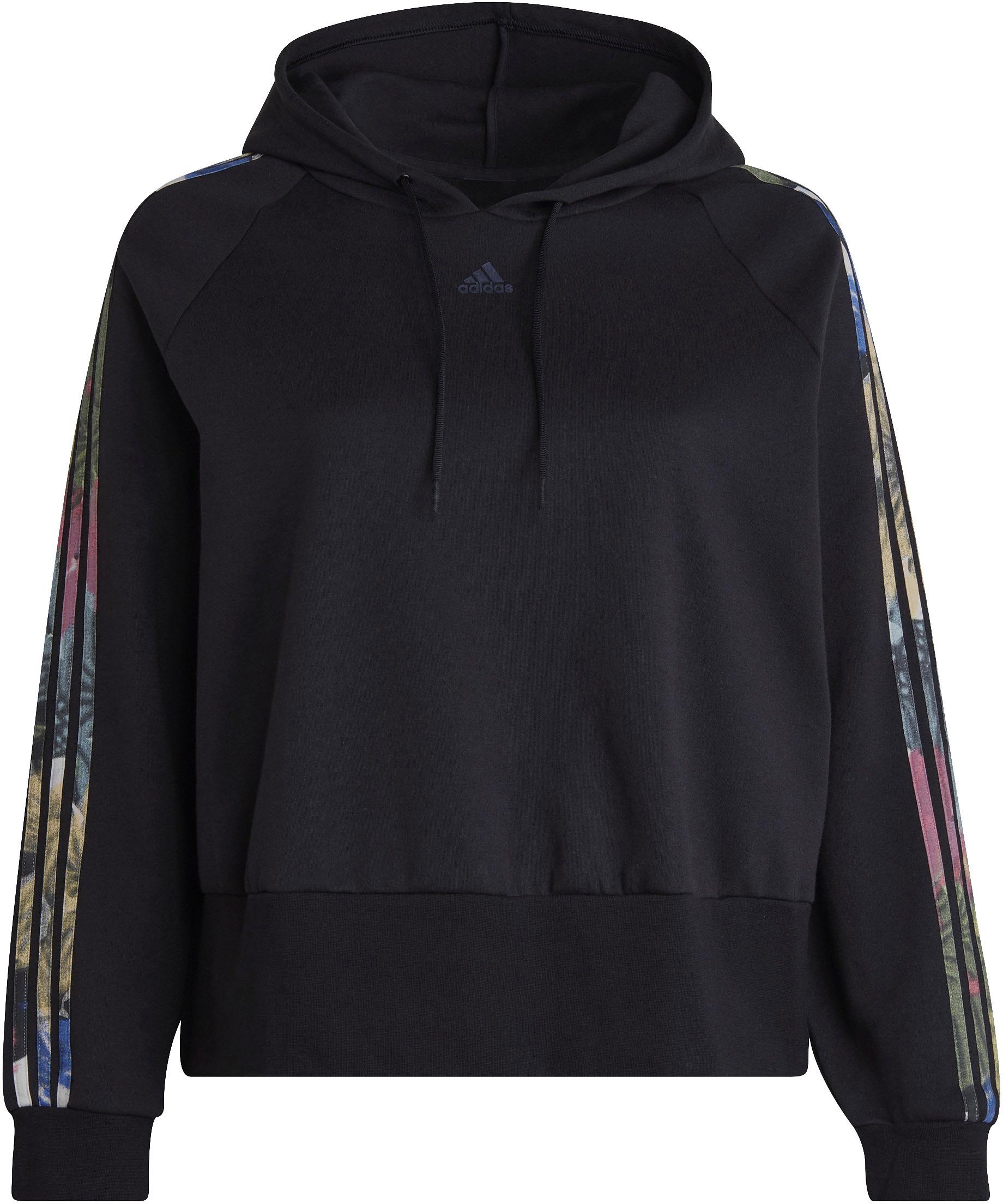 Hoodie mit bunt gemusterten 3-Streifen in großer Größe; Kapuze mit Kordelzug; kleines Logodetail; breite Bündchen an den Ärmeln und am Saum; lockere Passform; mit Recyclingmaterial hergestellt; Material 67% Baumwolle, 33% Polyester (recycelt).