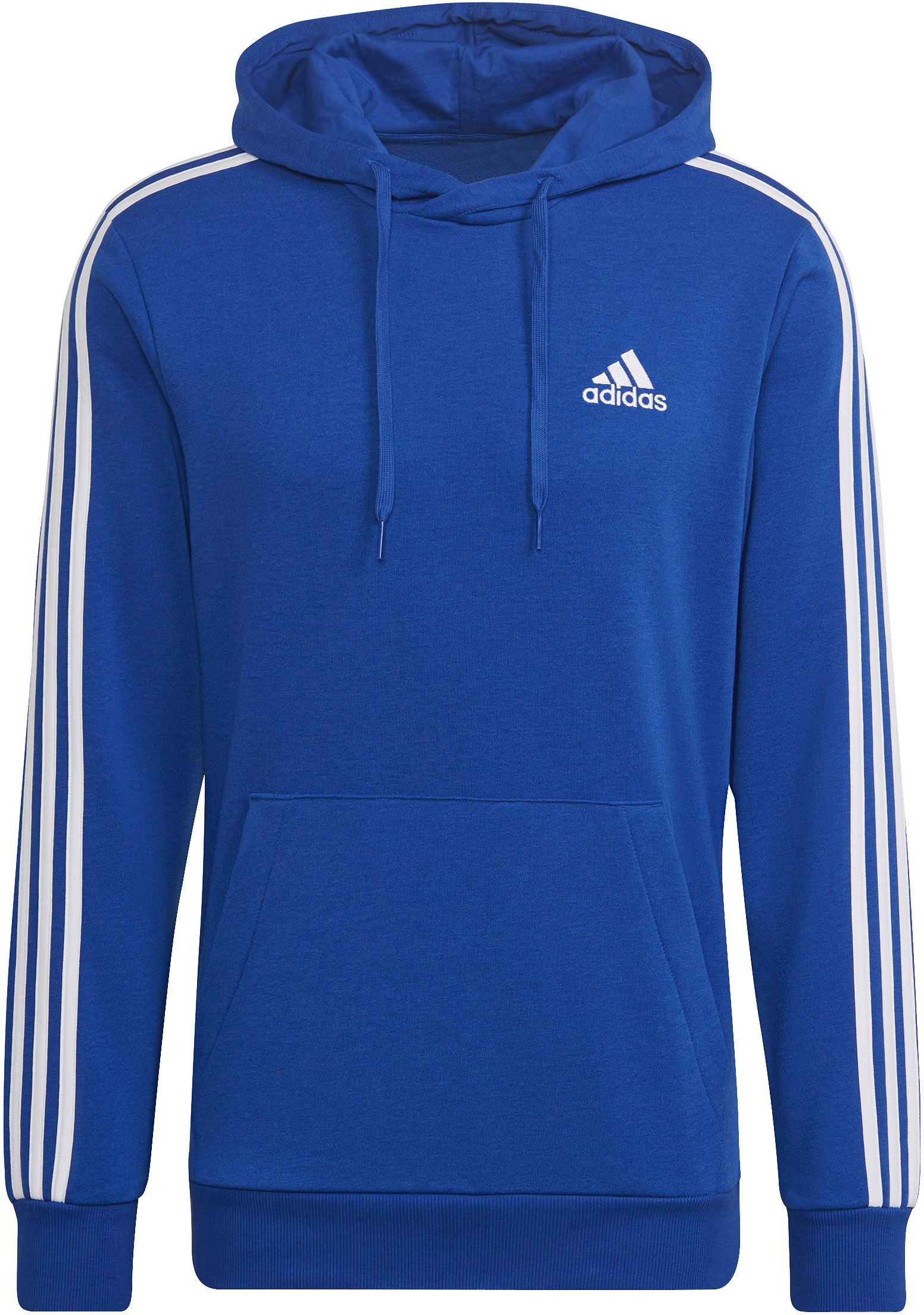 Hoodie im Retro-Design mit 3-Streifen auf den Ärmeln; durch Kordelzug regulierbare Kapuze; Kängurutasche; Abschlüsse mit Rippbündchen; Logodetail auf der Brust; Regular Fit; mit Recyclingmaterial und nachhaltiger Baumwolle hergestellt; Material 53% Baumwolle, 36% Polyester (recycelt), 11% Viskose.