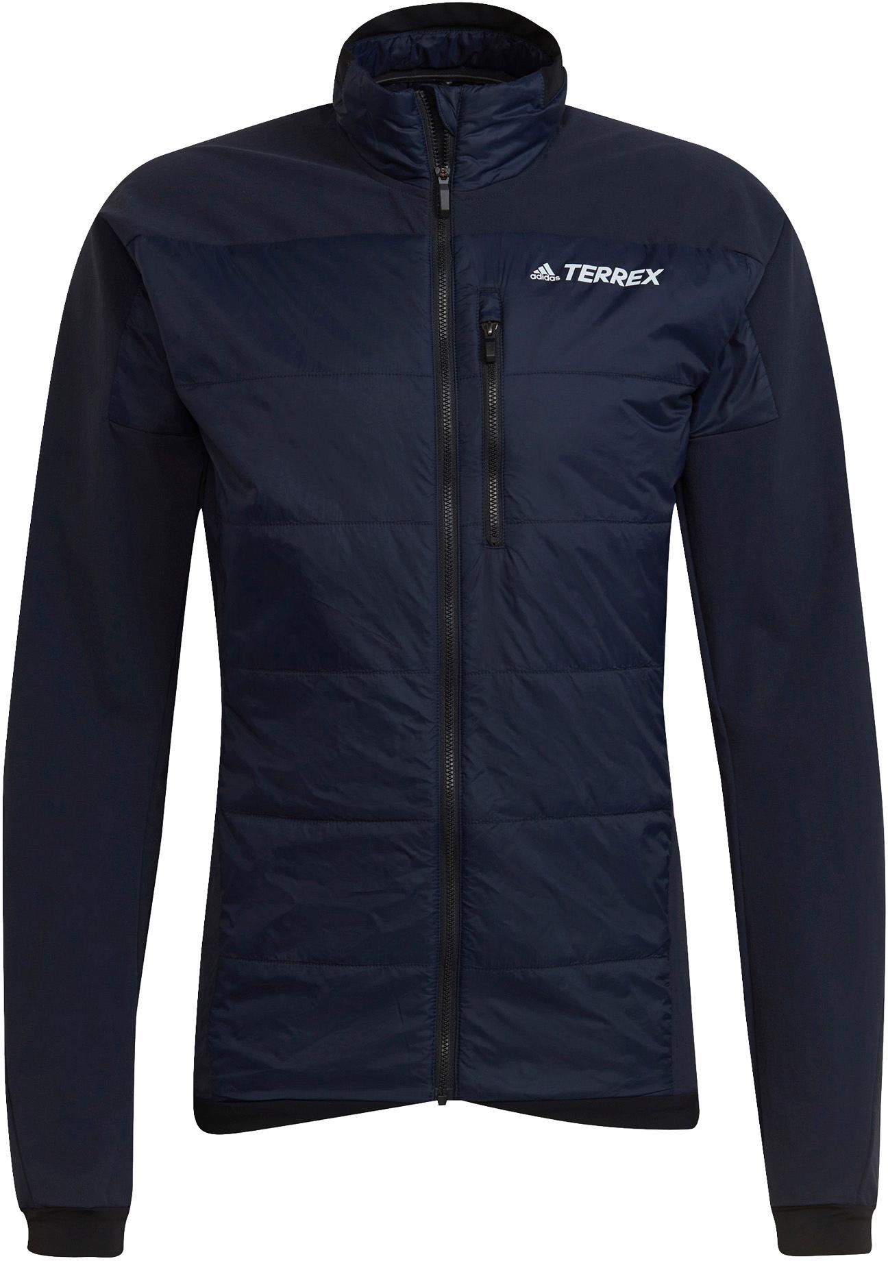 Hybrid-Funktionsjacke, mit warm wattierten Bereichen und Stretchgewebe; hohe Bewegungsfreiheit; Stehkragen mit Kinnschutz; 1 Brusttasche mit Reißverschluss, welche sich auch zum Transport der Jacke eignet und dadurch ein kompaktes Packmaß aufweist; Marken-Details; Material 90% Polyamid, 10% Elastan.