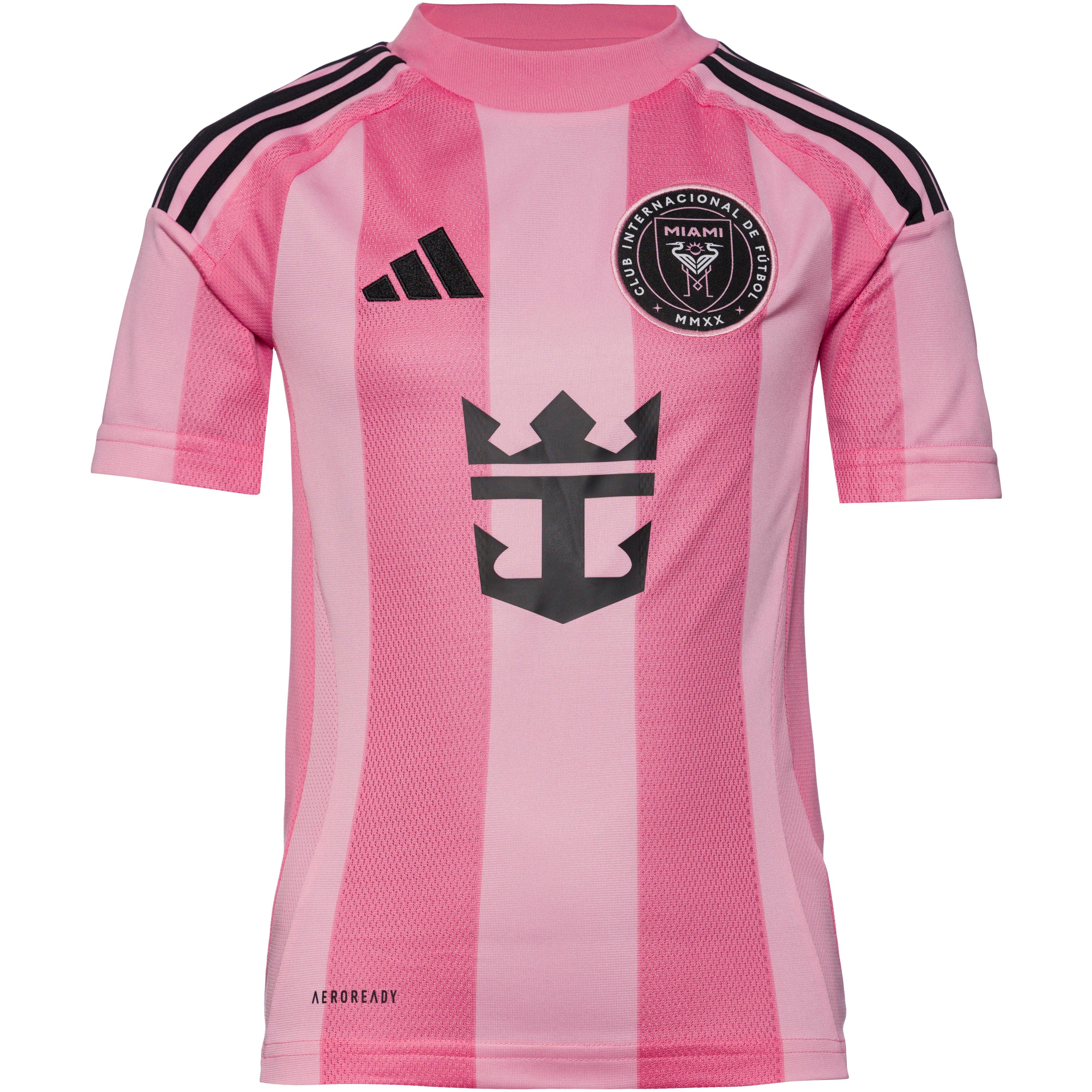 Trikot in den Farben des Inter Miami CF; Spielername Messi und Nummer 10 auf dem Rücken; atmungsaktiv, feuchtigkeitsregulierend und schnelltrocknend dank AERO.RDY-Technologie; Rundhalsausschnitt mit gerippter Blende; klassisches Streifendesign mit Logos auf der Vorderseite und markentypischen 3-Streifen an den Schultern; Mesh-Einsätze sorgen für mehr Luftzirkulation; Material 100% Polyester (recycelt).