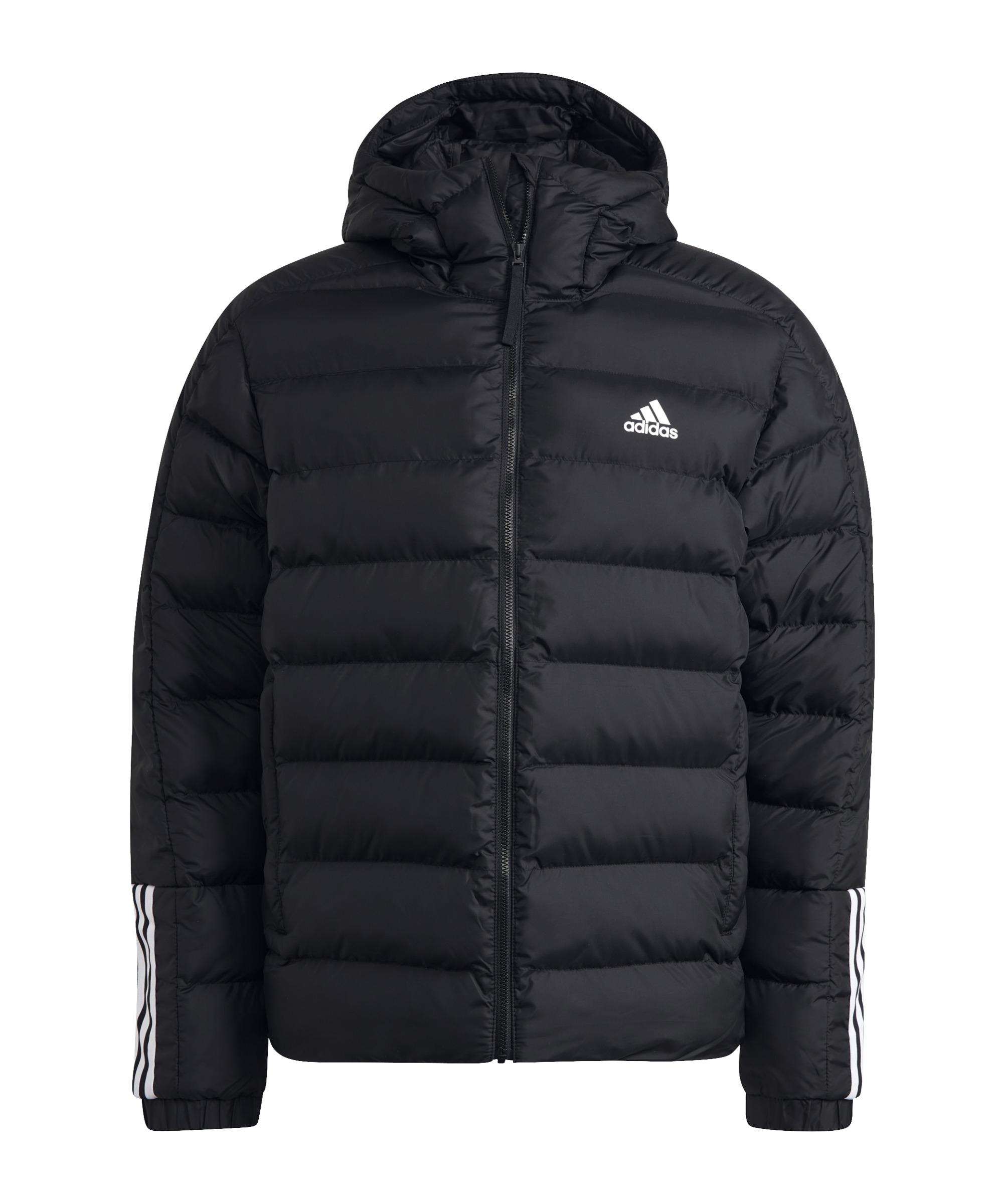 Steppjacke mit Kapuze und hohem Kragen; Kinnschutz; durchgehender Reißverschluss; Logo-Detail auf der Brust; seitliche Eingrifftaschen mit Reißverschluss; 3-Streifen-Details an den Ärmeln; elastische Ärmelbündchen; normale Passform; Primegreen-Produkt aus recycelten Materialien, um Kunststoffabfälle zu vermeiden; leichte Synthetik-Isolierung; Material 100% Polyester (recycelt).