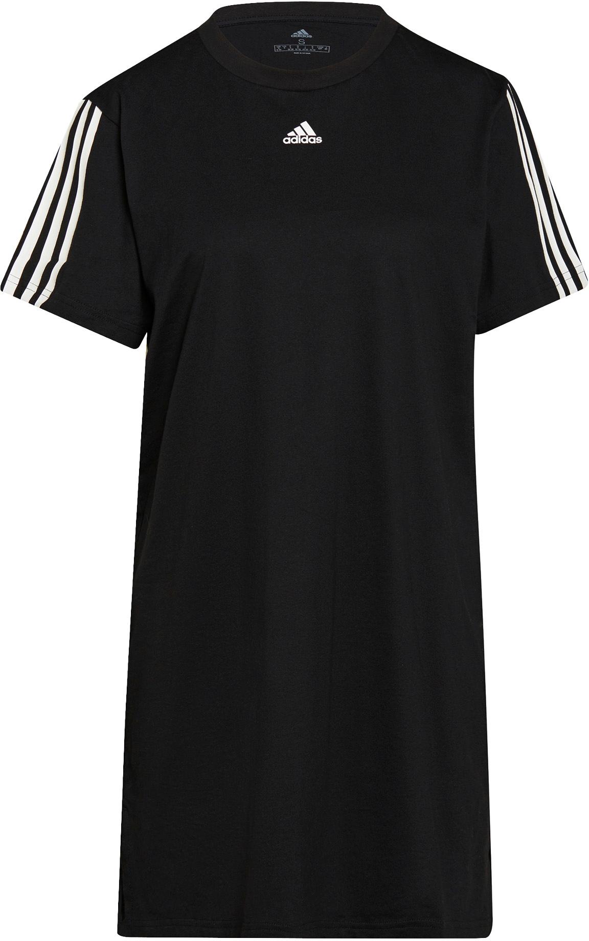 Gerade geschnittenes T-Shirt-Kleid mit Rundhalsausschnitt; 3-Streifen-Design an den Ärmeln; seitlich geschlitzter Saum; enthält nachhaltige Baumwolle; Material 100% Baumwolle.