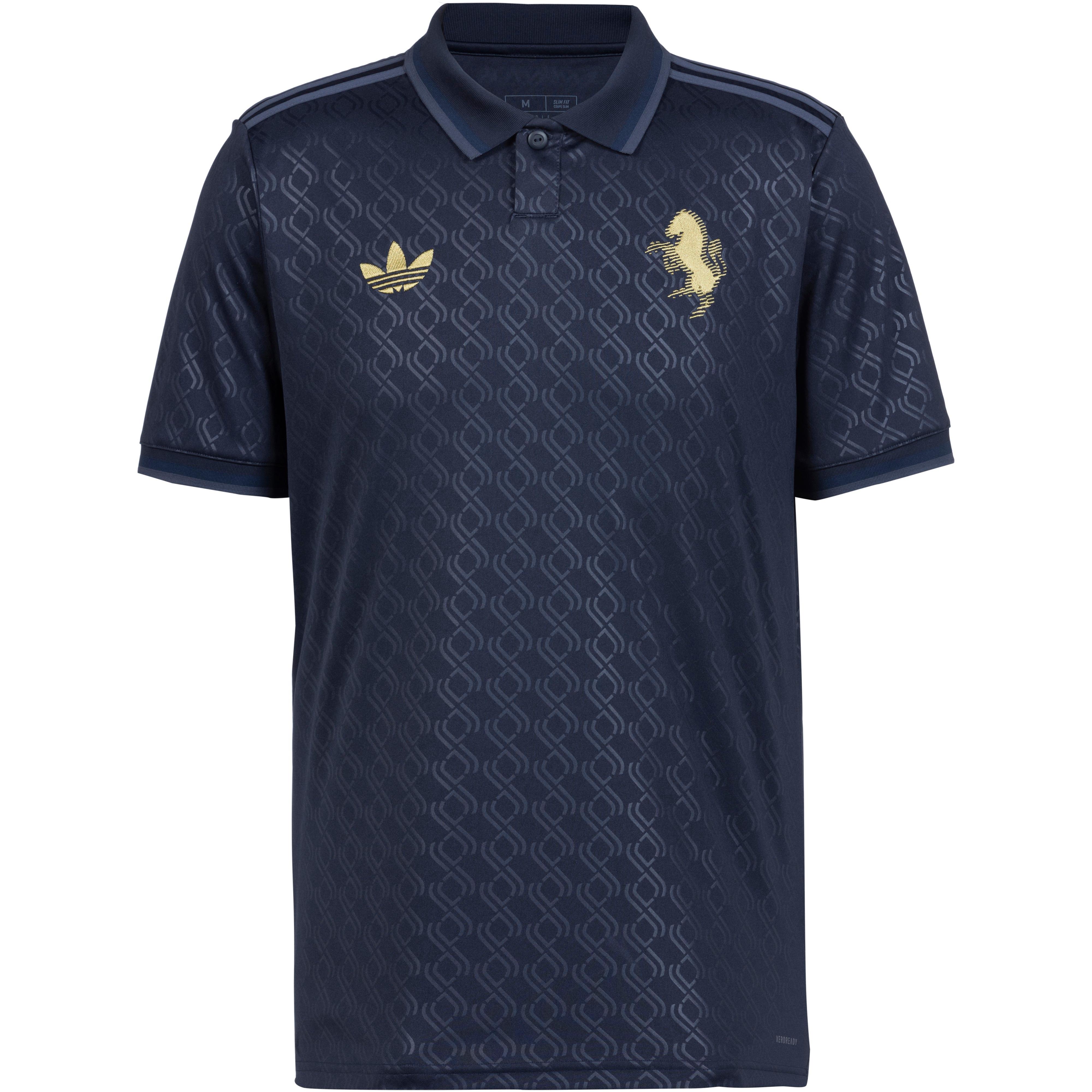 Juventus Turin Ausweichtrikot 2024/25; feuchtigkeitsregulierend und schnelltrocknend dank AERO.RDY-Technologie; atmungsaktiv und strapazierfähig; Allover-Print inspiriert vom Vereinswappen; Polokragen mit Knopfverschluss; klassische 3-Streifen an den Schultern; Marken- und Vereinslogo auf der Brust; elastische Ärmelbündchen; Material 100% Polyester (recycelt).