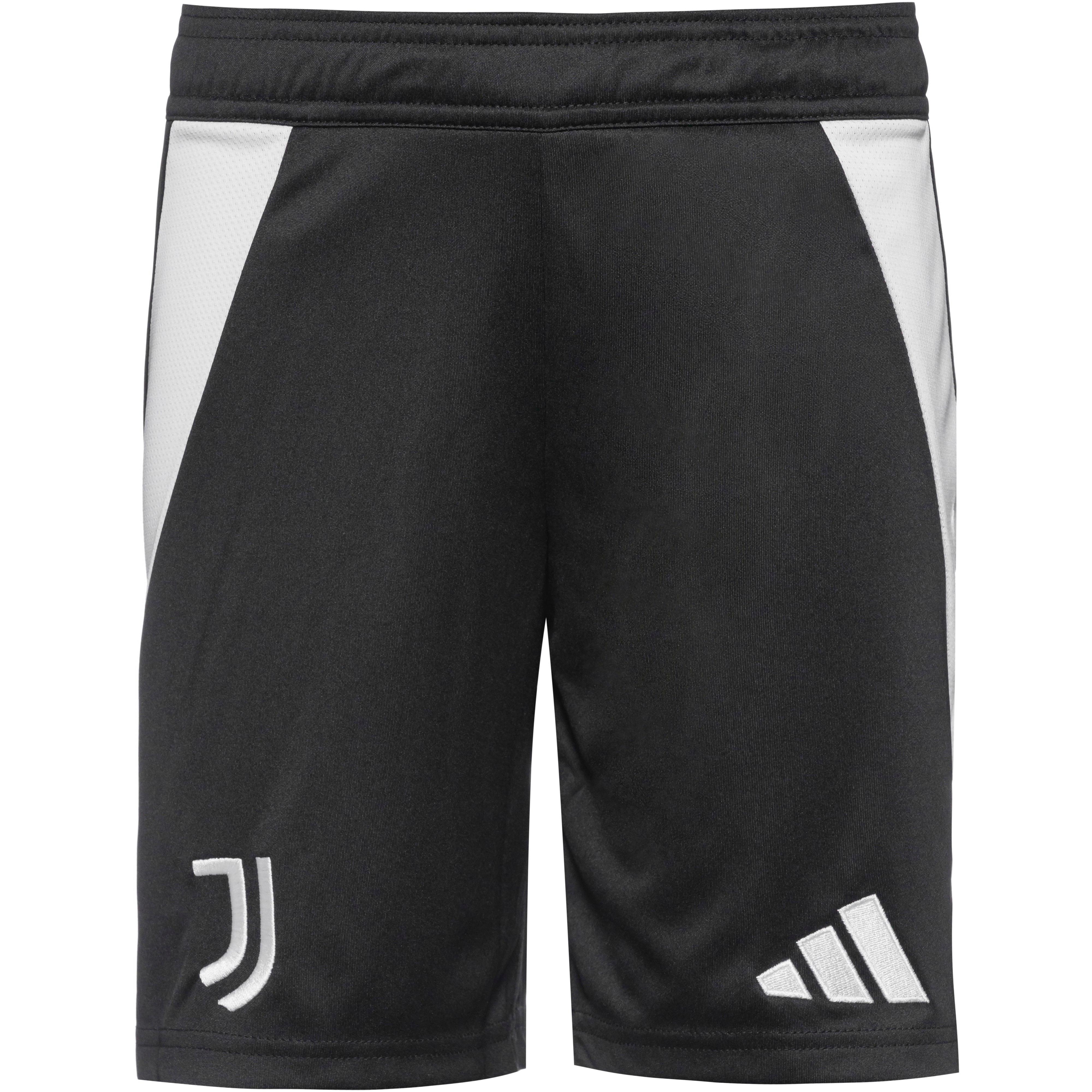 Fußballshorts für Kinder, im Heim-Design des Juventus Turin, für die Saison 2024/25; mit feuchtigkeitsregulierender, atmungsaktiver und schnelltrocknender AERO.RDY-Technologie; weitenregulierbarer Elastikbund mit innenliegendem Kordelzug; die strategisch platzierten Mesh-Einsätze sorgen für angenehme Ventilation; Material 100% Polyester (recycelt).