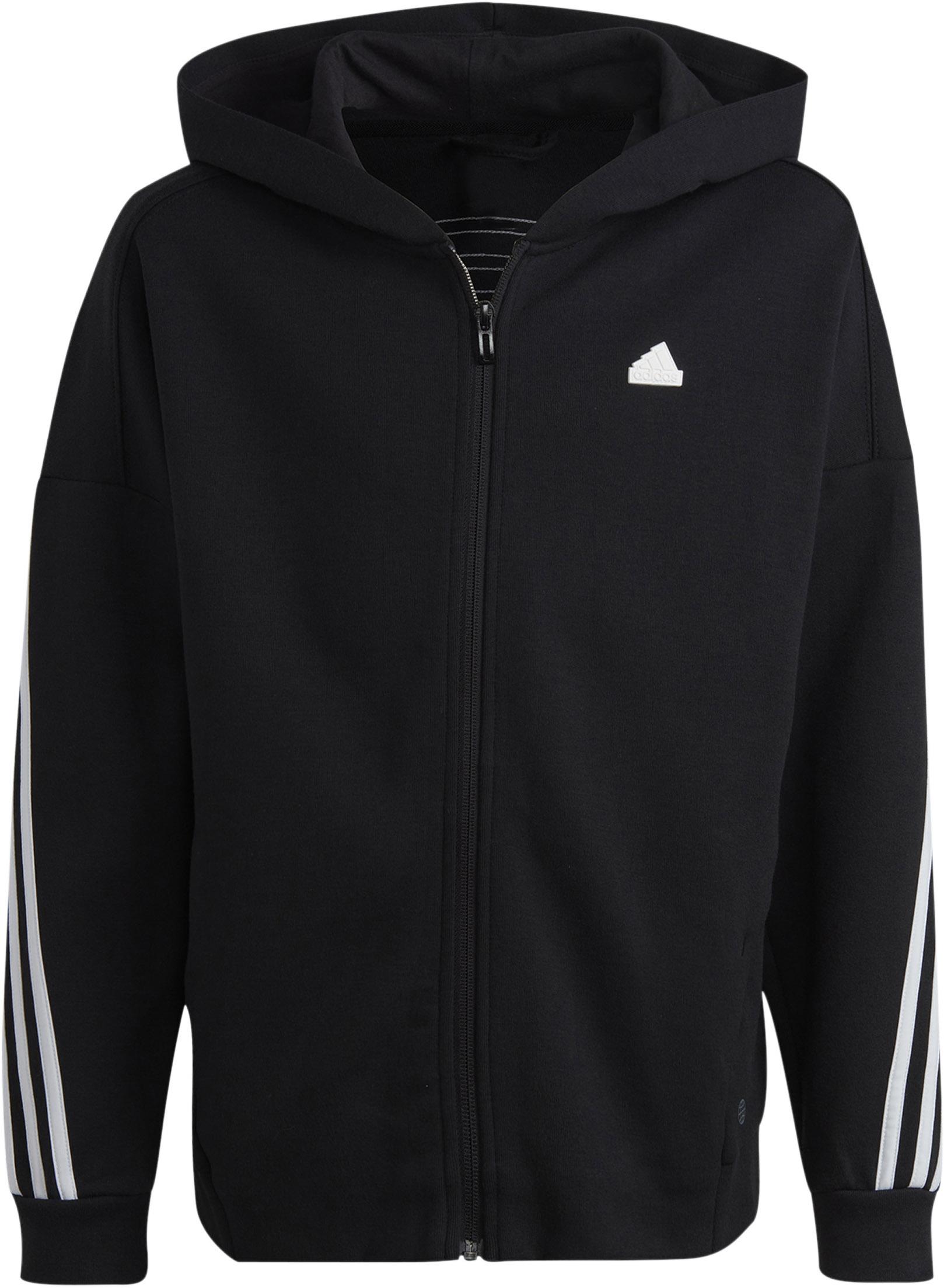 Trainingsjacke mit 3-Streifen an Ärmeln und Schultern; komfortables Baumwoll-Mischgewebe; feste Kapuze; durchgehender Reißverschluss; Logodetail auf Brusthöhe; normale Passform; mit Recyclingmaterial hergestellt; Material 67% Baumwolle, 33% Polyester (recycelt).