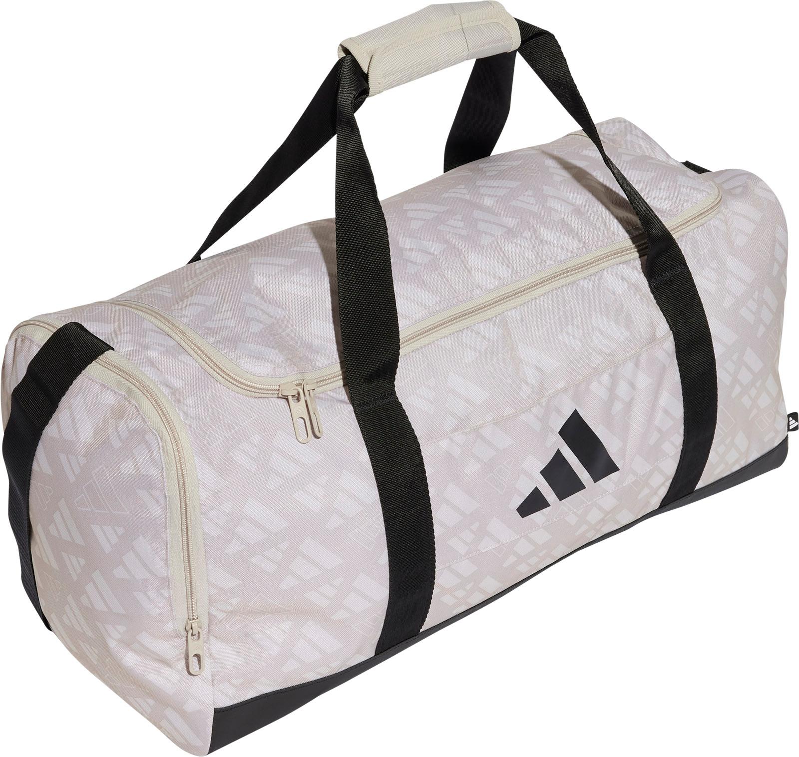 Sporttasche in mittlerer Größe mit Allover-Logoprint; strapazierfähiges Material; 2 Tragehenkel mit Klettriegel; verstellbarer Schulterriemen; 1 Seitenfach mit Reißverschluss; 1 Mesh-Seitenfach; geräumiges Hauptfach mit 2-Wege-Reißverschluss; robuster, beschichteter Boden; aus Recyclingmaterial hergestellt; Gewicht: ca. 460 g; Material Polyester.