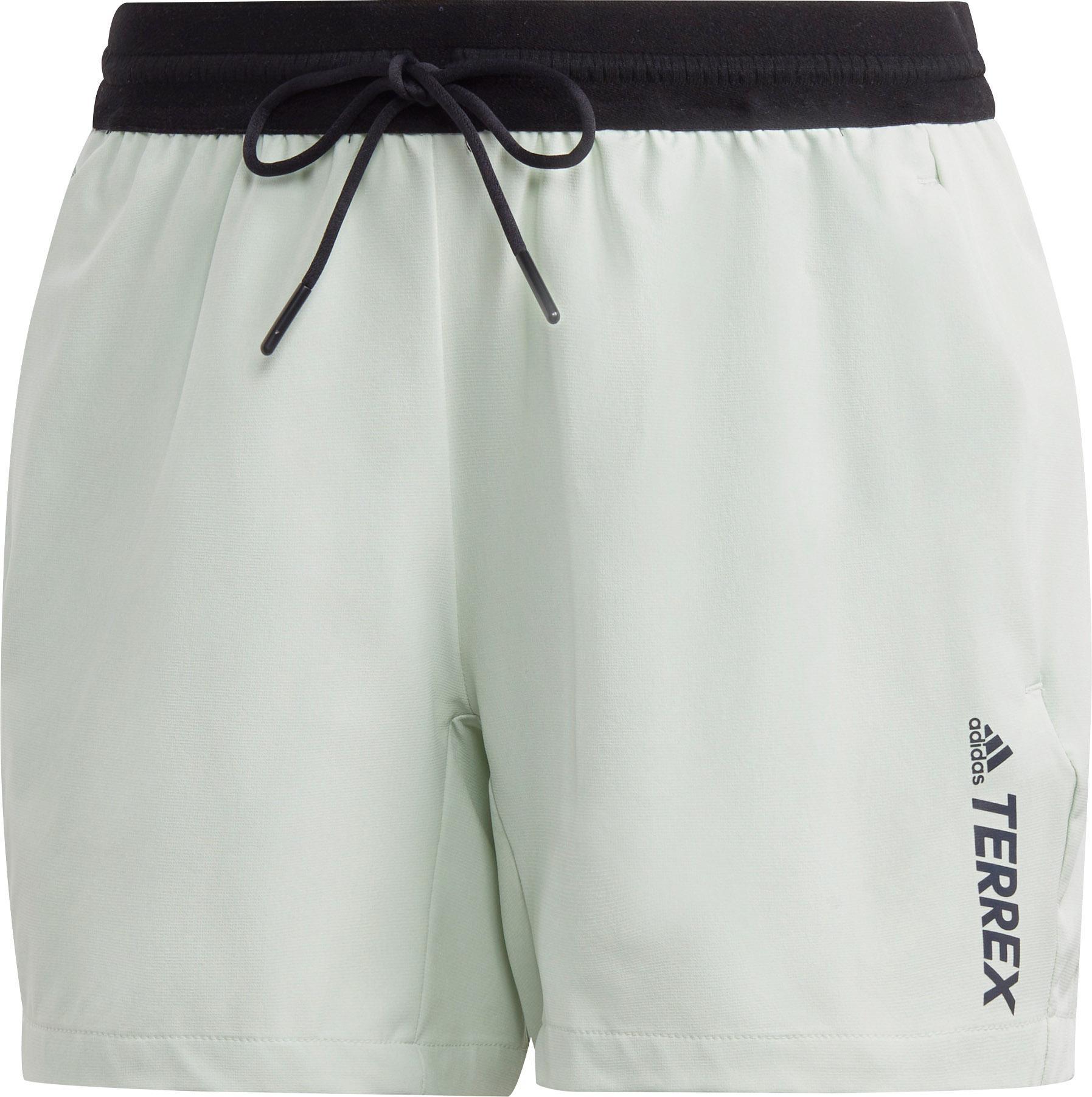 Leichte Funktionsshorts mit regulierbarem Elastikbund durch Kordelzug auf der Vorderseite; 2 Eingrifftaschen; Terrex-Schriftzug an der Seite; Material 90% Polyester, 10% Elastan.