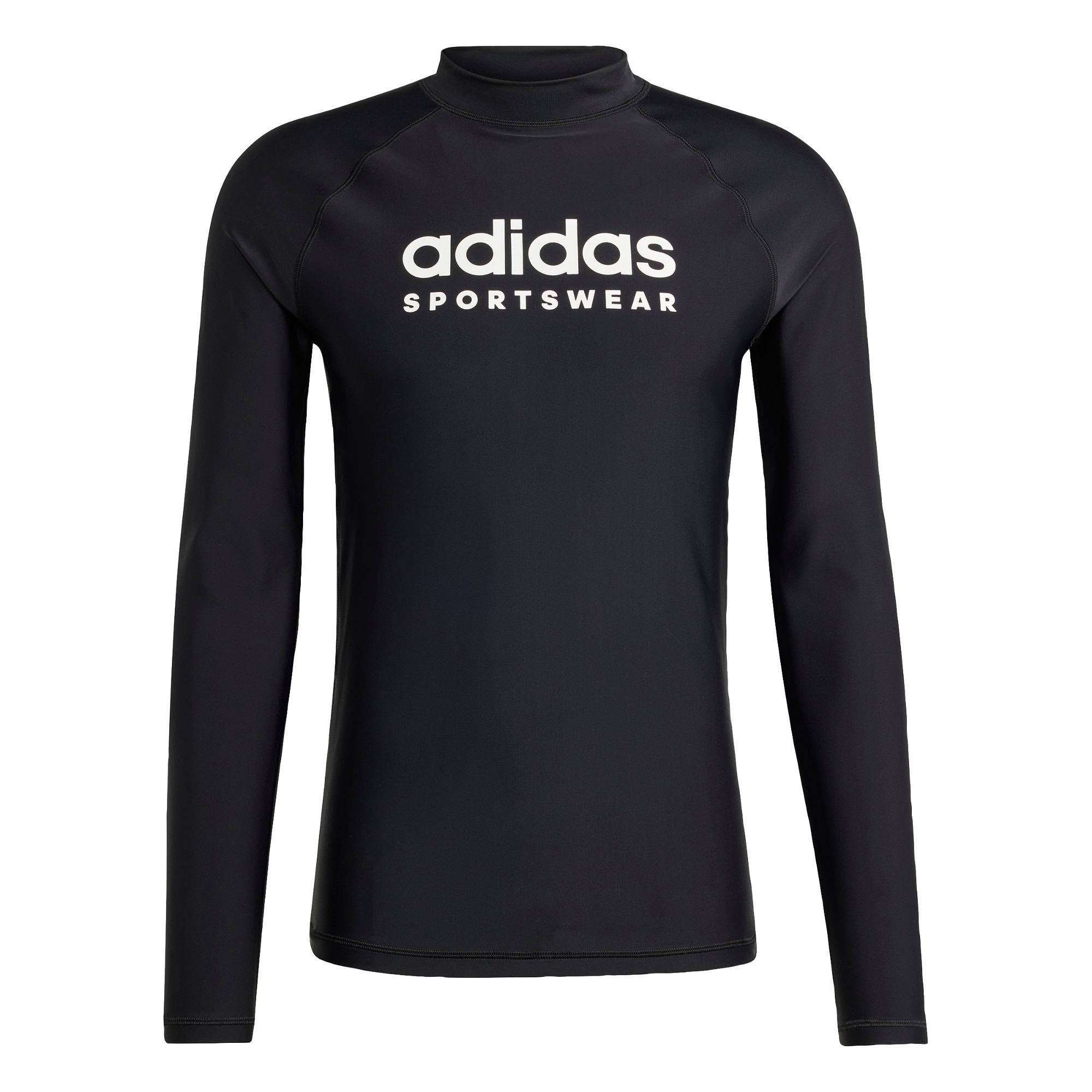 Dieser eng anliegende Rashguard sieht nicht nur stylish aus. Er schützt dich auch vor Sonne, Sand und Wind und zeigt gleichzeitig deine Begeisterung für adidas. Der angedeutete Kragen und die langen Ärmel sorgen für ein Plus an Komfort, während das stretchige Trikotmaterial dir volle Bewegungsfreiheit gibt. Egal, ob du morgens schon Wellen fängst oder am Pool entspannst – die legendäre adidas Sportswear Grafik auf der Vorderseite zeigt deine Begeisterung für die Marke mit den 3-Streifen.Dieses Produkt ist mit mindestens 70 % recycelten Materialien hergestellt. Die Wiederverwendung bereits vorhandener Materialien hilft uns dabei, Müll zu reduzieren, unsere Abhängigkeit von nicht erneuerbaren Ressourcen einzuschränken und den CO2-Fußabdruck unserer Produkte zu verringern.