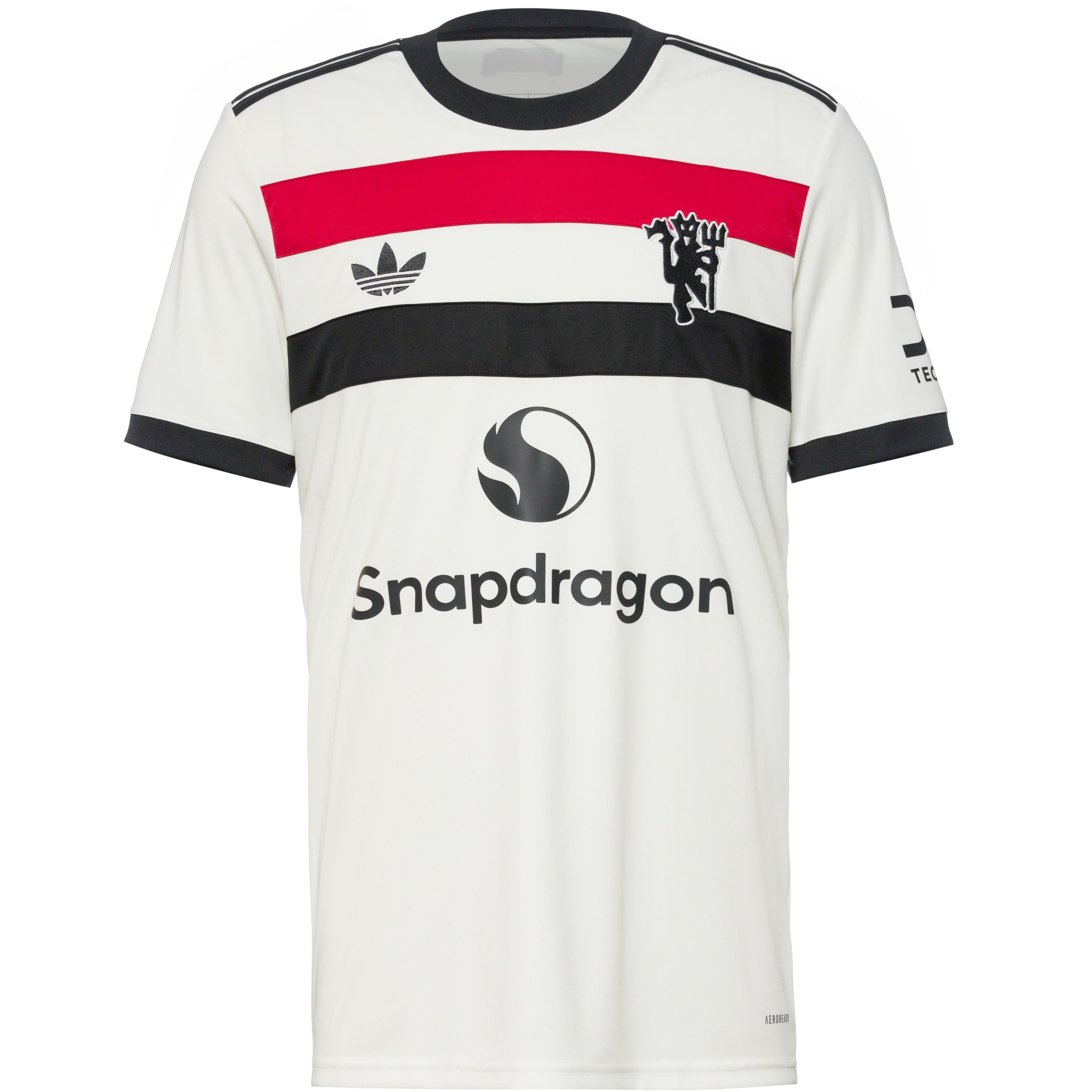 Ausweich-Trikot des Manchester United, für die Saison 2024/25; mit feuchtigkeitsregulierender, atmungsaktiver und schnelltrocknender AERO.RDY-Technologie; Rundhalsausschnitt; Marken-, Sponsoren- und Vereinsdetails auf der Front; Material 100% Polyester (recycelt).