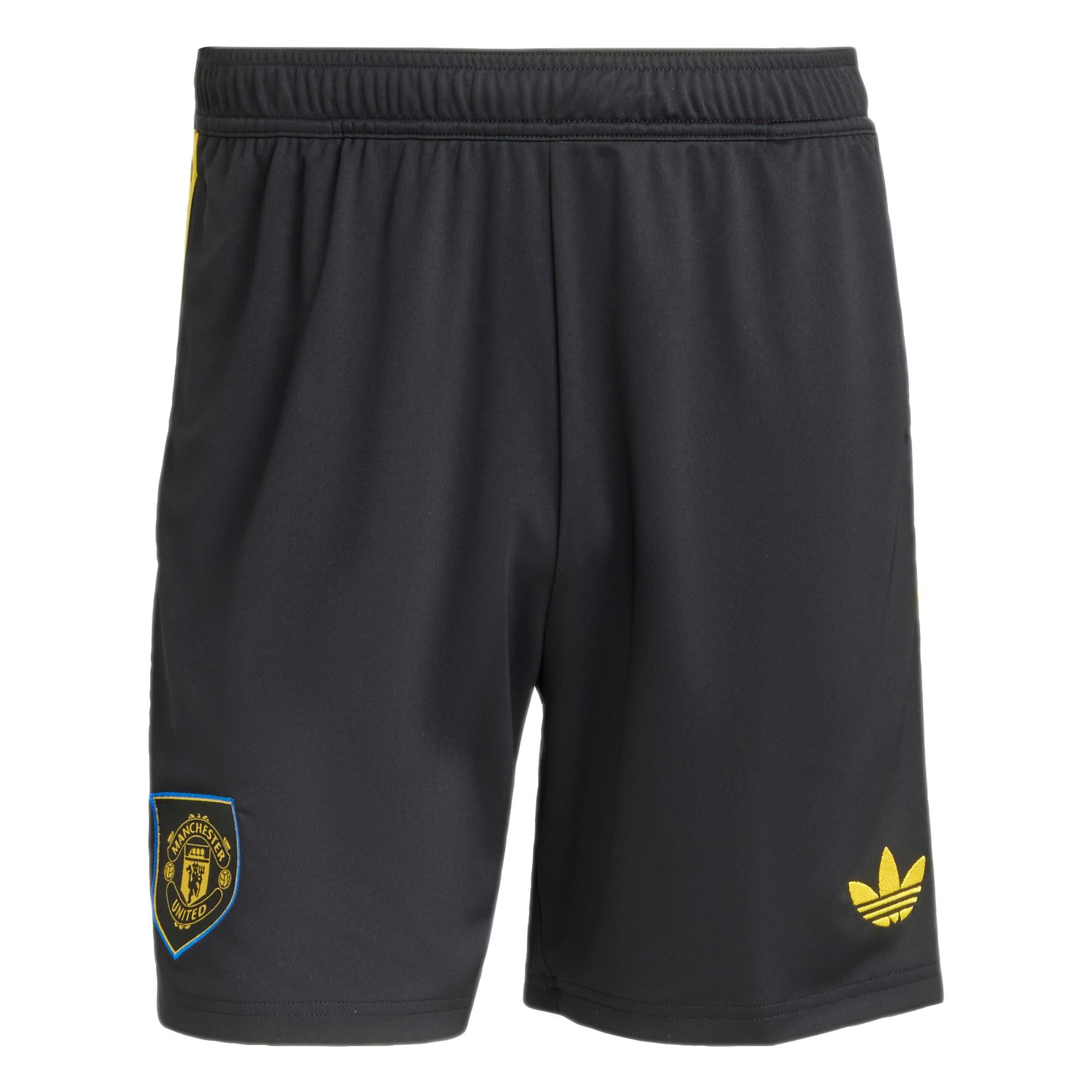 Teil einer schlichten, klassischen adidas Ausrüstung, die Fußballfans in die goldene Ära zurückversetzt. Diese schwarze Manchester United Ausweichshorts erinnert an die legendärsten Spieler und an unvergessliche Auswärtsspiele des Clubs. Ein gelbes Trefoil und das Vereinslogo an den Beinen ziehen Blicke auf sich. Feuchtigkeitsregulierendes AEROREADY hält dich frisch, wenn du dich von deiner besten Seite zeigst.