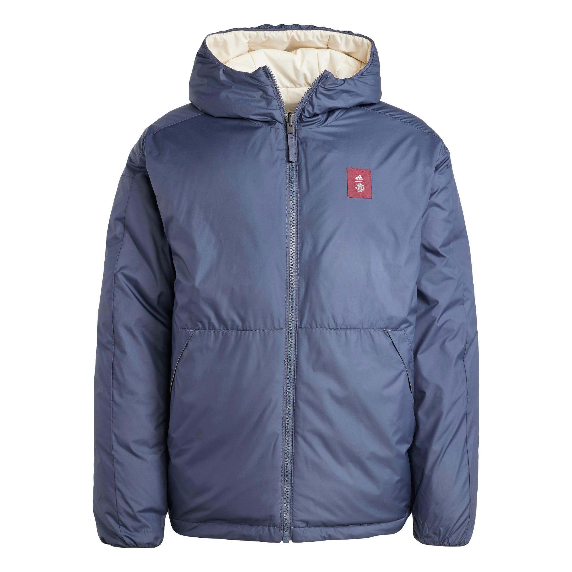 Diese adidas Jacke bringt Manchester United Fans warm durch die kalte Jahreszeit. Egal, ob du im Old Trafford ein Spiel verfolgst oder eine andere Art von Freizeit-Action startest, sie hält dich angenehm warm und zeigt mit einem kleinen Vereinslogo deine Fanliebe. Ihre Füllung aus Entendaunen und Federn schützt dich in Kombi mit der gemütlichen Kapuze vor den Elementen. Dank des Wendedesigns bietet sie dir außerdem zahlreiche Styling-Optionen.Dieses Produkt ist mit mindestens 70 % recycelten Materialien hergestellt. Die Wiederverwendung bereits vorhandener Materialien hilft uns dabei, Müll zu reduzieren, unsere Abhängigkeit von nicht erneuerbaren Ressourcen einzuschränken und den CO2-Fußabdruck unserer Produkte zu verringern.