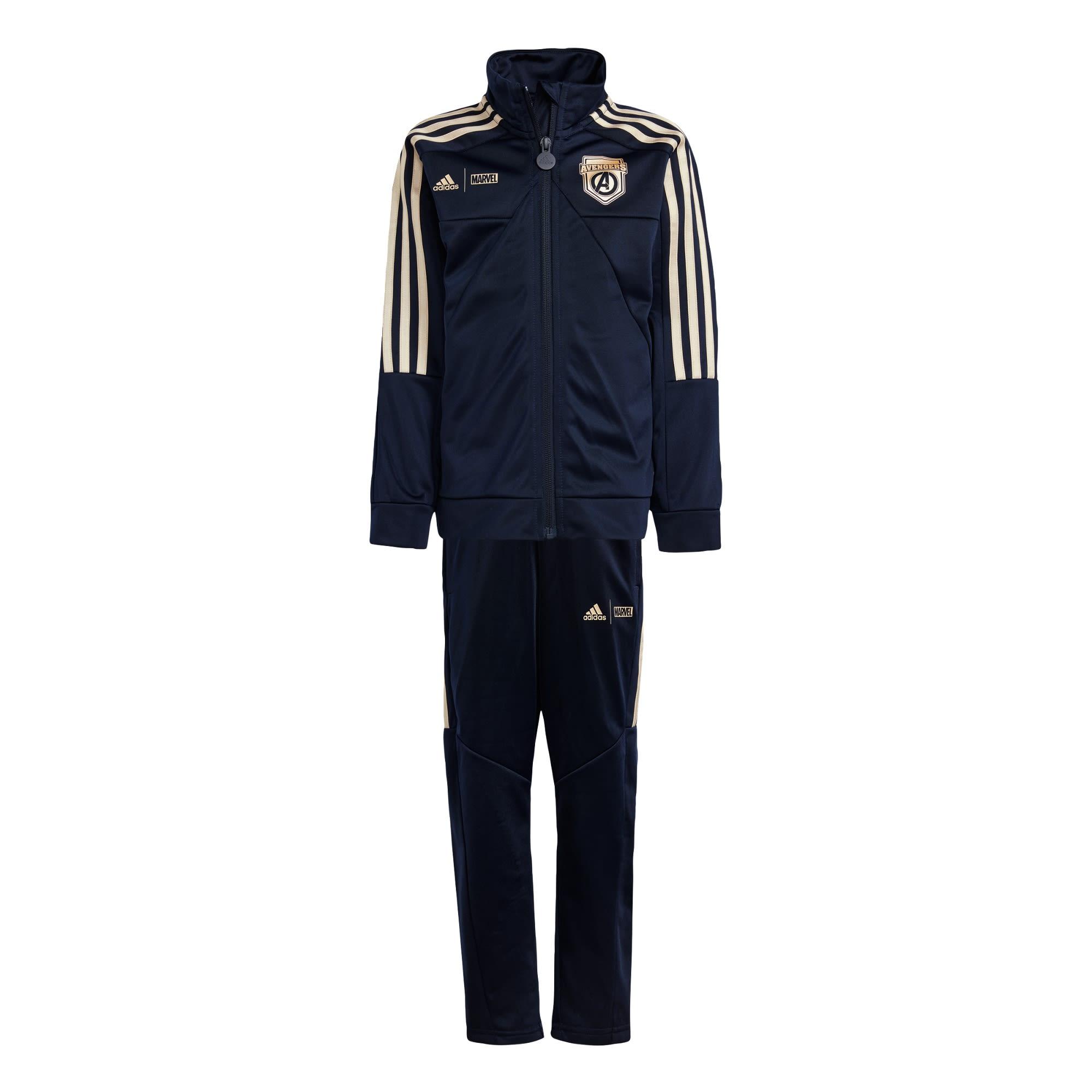 Du bist auf Mission mit den mächtigsten Helden der Welt? Mit diesem adidas Trainingsanzug können junge Avengers ihren Lieblingshelden nacheifern. Das Trikotmaterial aus Polyester und die bequeme Passform sorgen für höchsten Tragekomfort bei jeder Action. Der Trainingsanzug kommt mit Grafiken, die von den legendären Avengers Uniformen inspiriert sind. Jetzt fehlt nur noch der Rest des Teams.Dieses Produkt ist mit 100 % recycelten Materialien hergestellt. Die Wiederverwendung bereits vorhandener Materialien hilft uns dabei, Müll zu reduzieren, unsere Abhängigkeit von nicht erneuerbaren Ressourcen einzuschränken und den CO2-Fußabdruck unserer Produkte zu verringern.