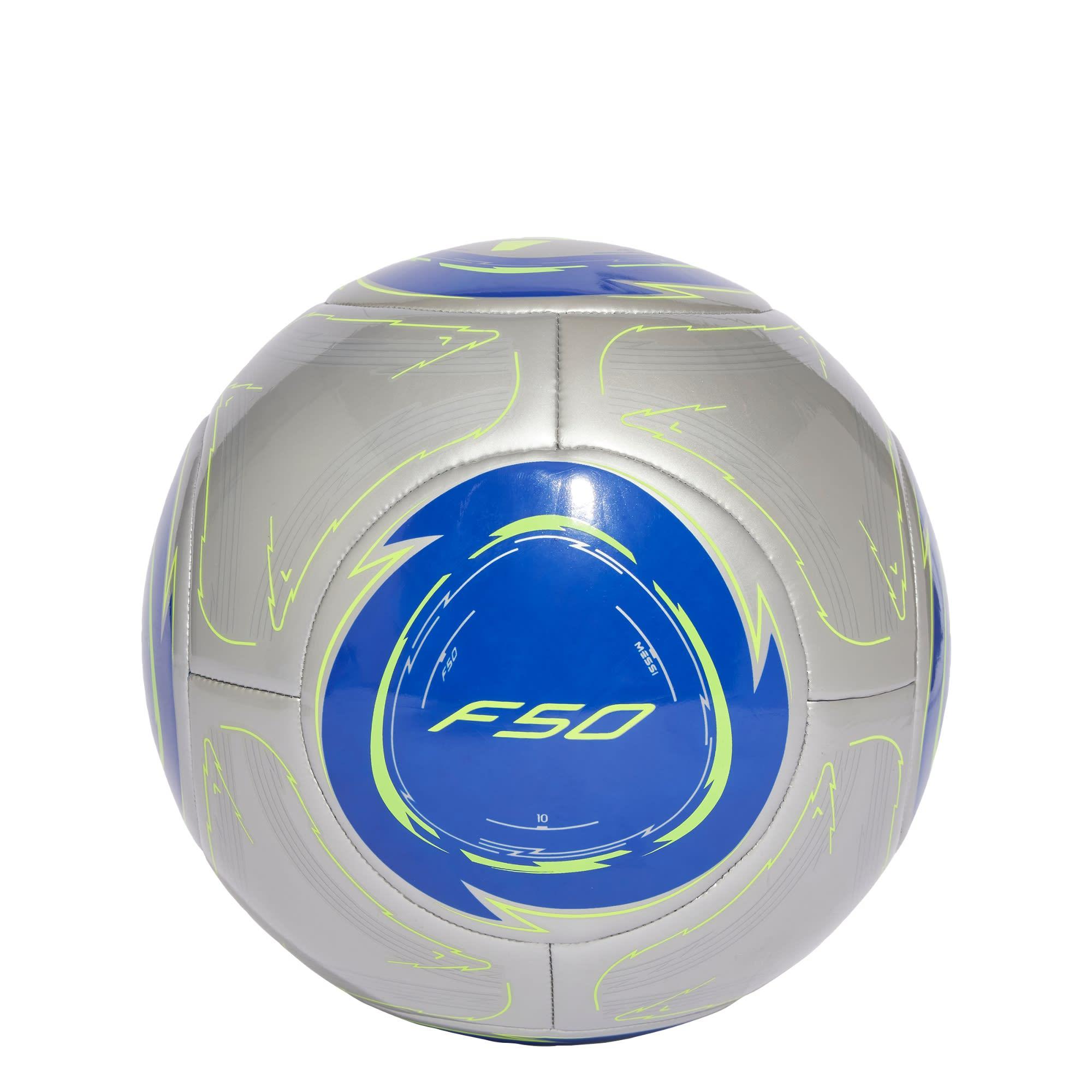 Mit diesem adidas Club Ball für entspannte Matches zeigst du deine Fanliebe für den GOAT der Fußballwelt. Das Messi Logo und das 3-Streifen Logo erstrahlen in leuchtendem Gelb auf dem blau-silbernen Hintergrund dieses maschinengenähten Balls. Beim Tunneln von Verteidiger_innen und Versenken von Freistößen unterstreicht sein stylishes Design deine Skills.