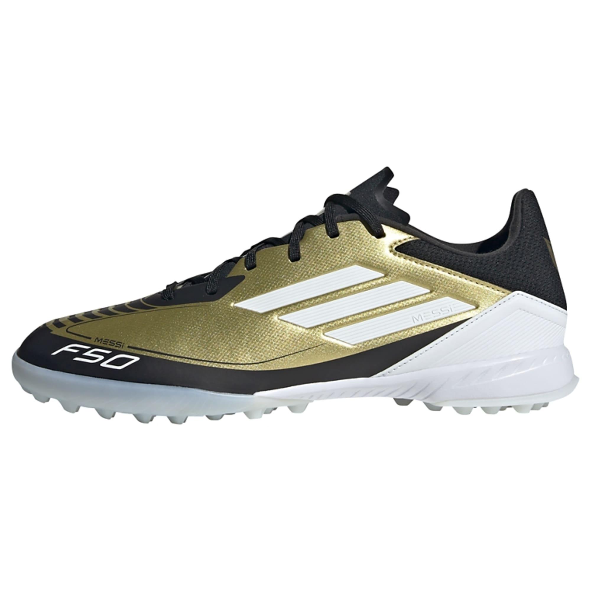 F50 Speed, Messi Style. 2024 werden die adidas Fußballschuhe aus der Lionel Messi Kollektion so gefertigt, dass sie seinen Vorlieben sogar noch besser entsprechen. Dieser F50 League Fußballschuh kommt mit dem flexiblen HybridTouch Obermaterial und einer bequemen Synthetik-Zunge für ein leichtes Tragegefühl. Außerdem ermöglicht dir die genoppte Gummiaußensohle reaktionsfreudige Moves auf kurzem Kunstrasen, Hart- und Aschenplätzen.Dieses Produkt ist mit mindestens 20 % recycelten Materialien hergestellt. Die Wiederverwendung bereits vorhandener Materialien hilft uns dabei, Müll zu reduzieren, unsere Abhängigkeit von nicht erneuerbaren Ressourcen einzuschränken und den CO2-Fußabdruck unserer Produkte zu verringern.