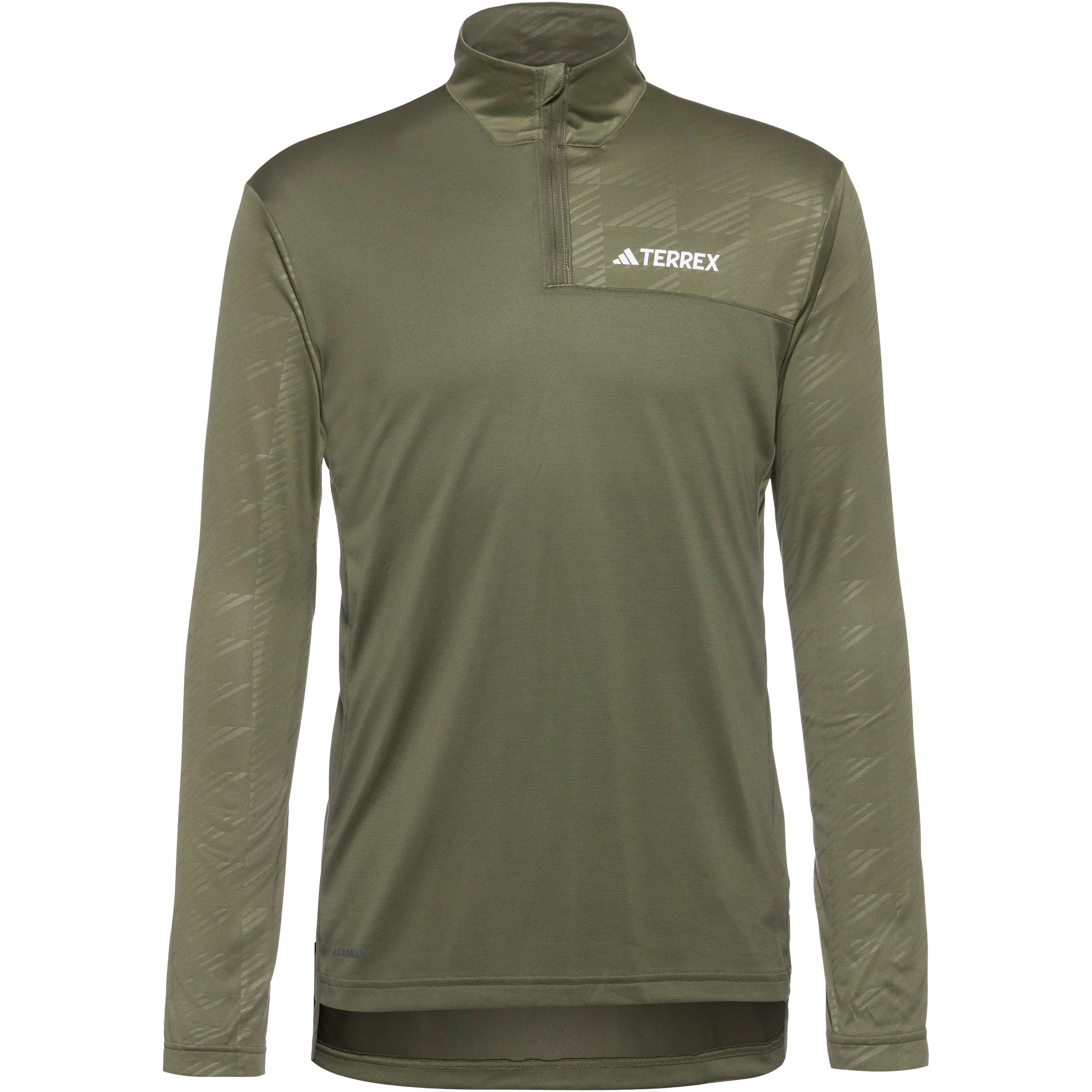 Enganliegendes, langärmliges Funktionsshirt für kalte Tage; atmungsaktives AERO.RDY-Material; feuchtigkeitsregulierend; schnelltrocknend; Stehkragen; Half-Zip-Reißverschluss; Rückseite länger geschnitten; diverse Logodetails; Material 100% Polyester.