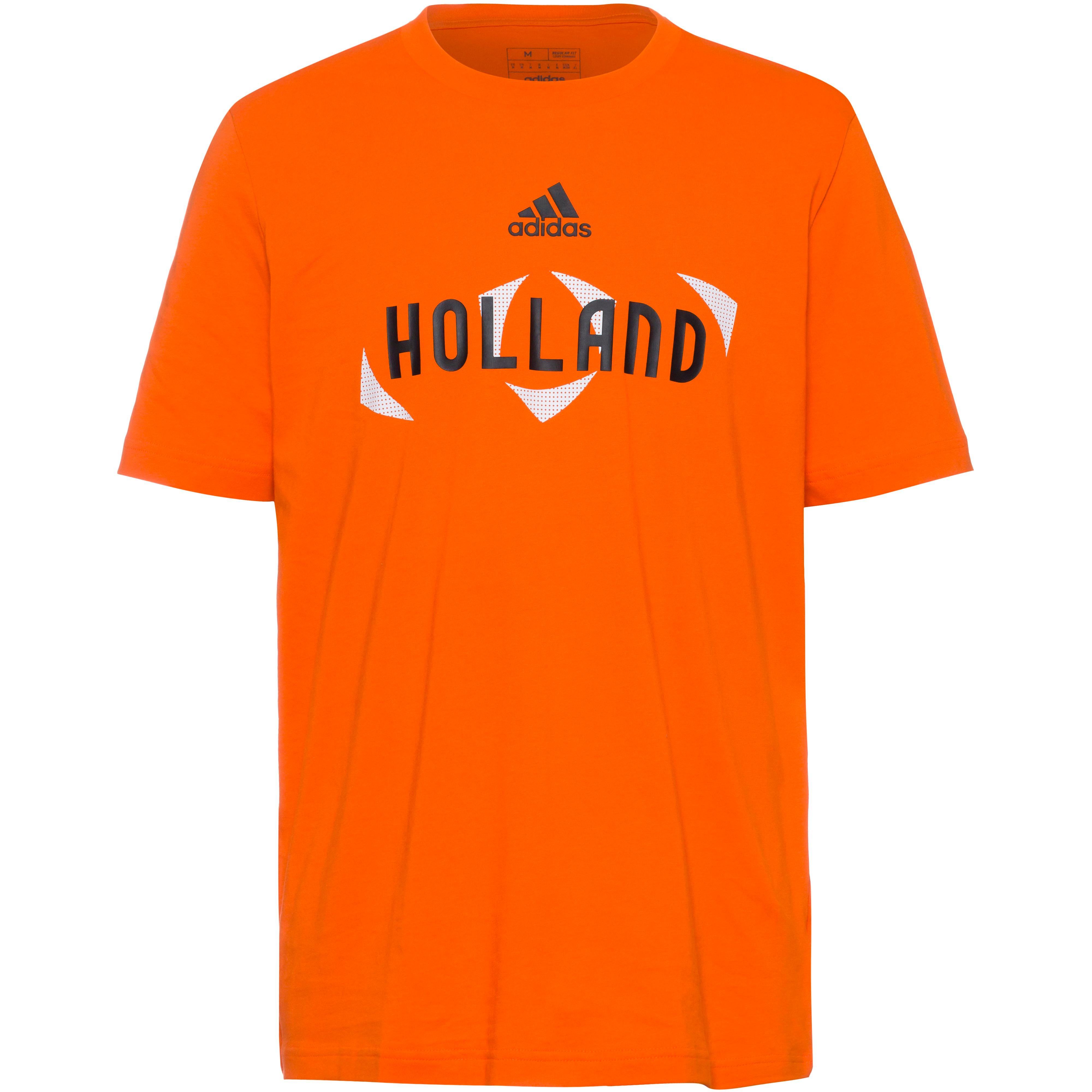 Fanshirt in den typisch niederländischen Farben, für die EM 2024; Rundhalsausschnitt; großer Holland Print auf der Front; Material I 100% Baumwolle, Material II 95% Baumwolle, 5% Elastan.