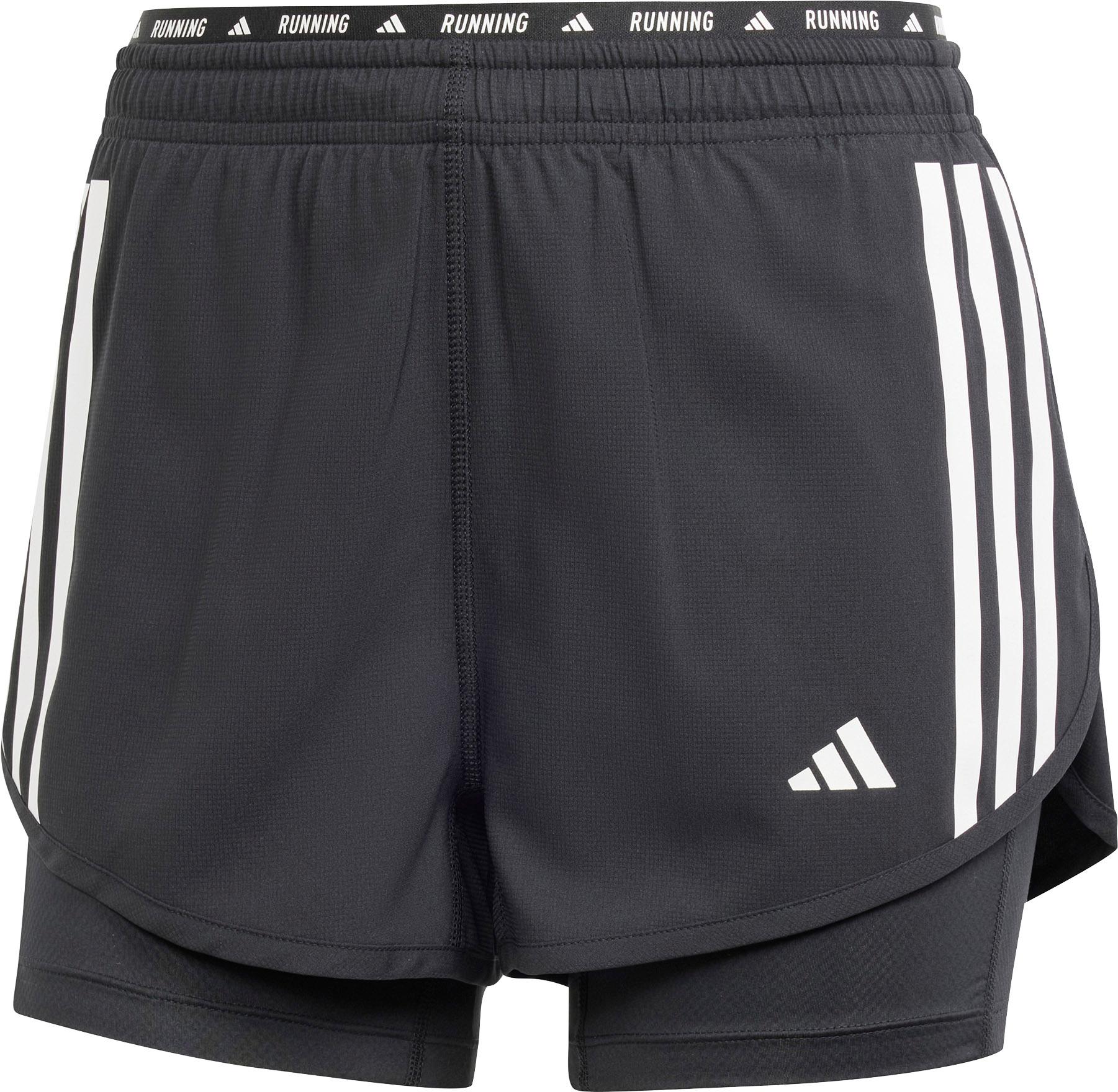 2-in-1-Funktionsshorts mit elastischem Bund und Kordelzug; enganliegende Innenhose; 3 Streifen-Design an der Seite und Logoprint; feuchtigkeitsregulierend und schnelltrocknend dank AERO.RDY-Technologie; atmungsaktiv und strapazierfähig; reflektierende Details; Material 100% Polyester (recycelt).