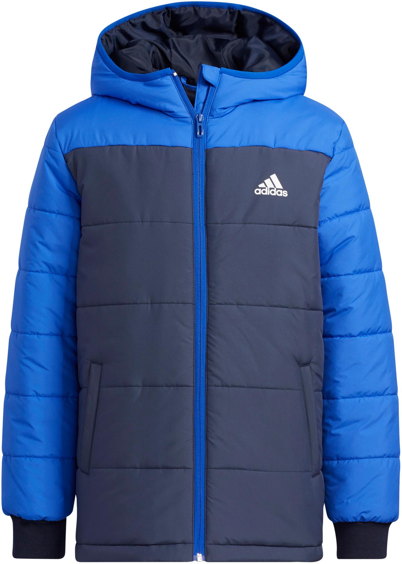 Wärmende Steppjacke für Kinder aus strapazierfähigem Gewebe mit Stehkragen und Kinnschutz; integrierte Kapuze; durchgehender und unterlegter Frontreißverschluss; 2 verdeckte Seitentaschen mit Reißverschluss; 1 Innentasche; elastische Ärmelabschlüsse; gerader Saum; Logo-Detail; Produkt aus der PRIME GREEN Initiative; Material 100% Polyester (recycelt).