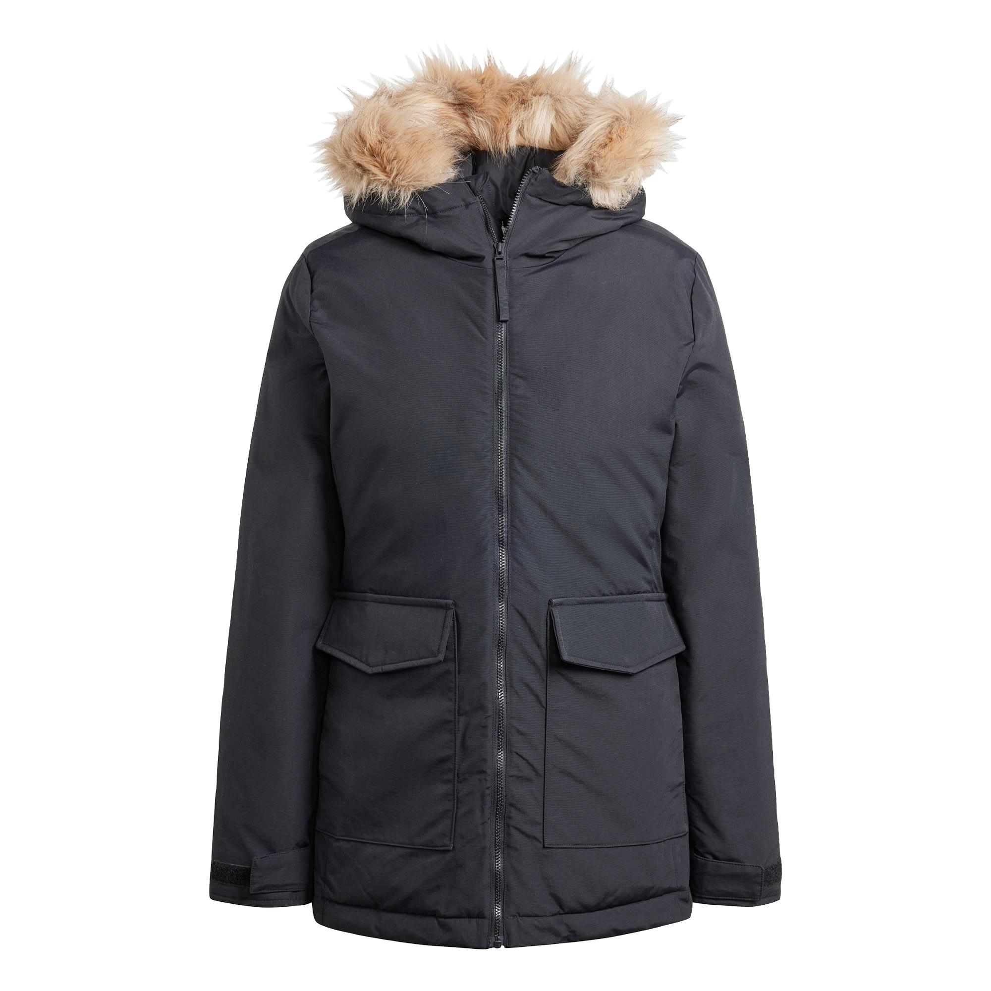 Eine klassische Jacke, die in deinem Kleiderschrank nicht fehlen darf. Dieser adidas Parka ist angenehm leicht und garantiert dir ein bequemes Tragegefühl. Die mit Kunstpelz eingefasste Kapuze bietet an windigen Tagen ein Plus an Komfort. On top hält die strapazierfähige, wasserabweisende (DWR) Beschichtung leichten Regen ab, damit dich unbeständiges Wetter nicht von deinen Plänen abhält.