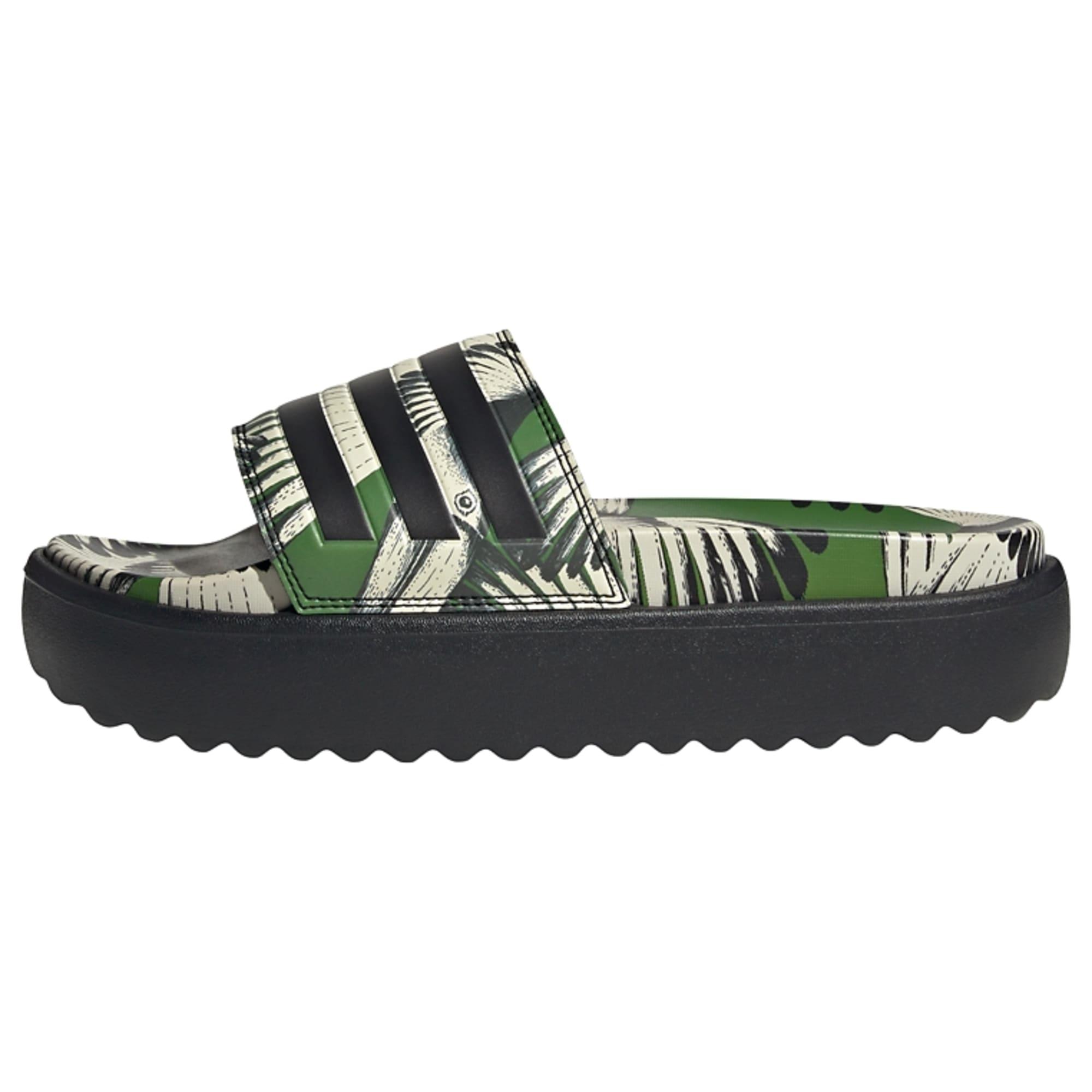 Diese adidas Platform Adilette ist eine kleine Style-Oase für deine Füße und verbindet Fashion mit Komfort. Ihre leichte und gleichzeitig strapazierfähige EVA-Plateausohle sorgt für lang anhaltende Dämpfung, während das Slip-On-Design einfaches An- und Ausziehen ermöglicht. Kombinier sie mit einem Sommerkleid für sonnige Tage oder mit Jeans und einem T-Shirt für entspannte Athleisure Vibes. Mit ihr holst du dir ein stylishes Piece aus der Collab mit FARM Rio, das die verspielt-bunte Designhandschrift mit Gute-Laune-Flair des brasilianischen Labels trägt.