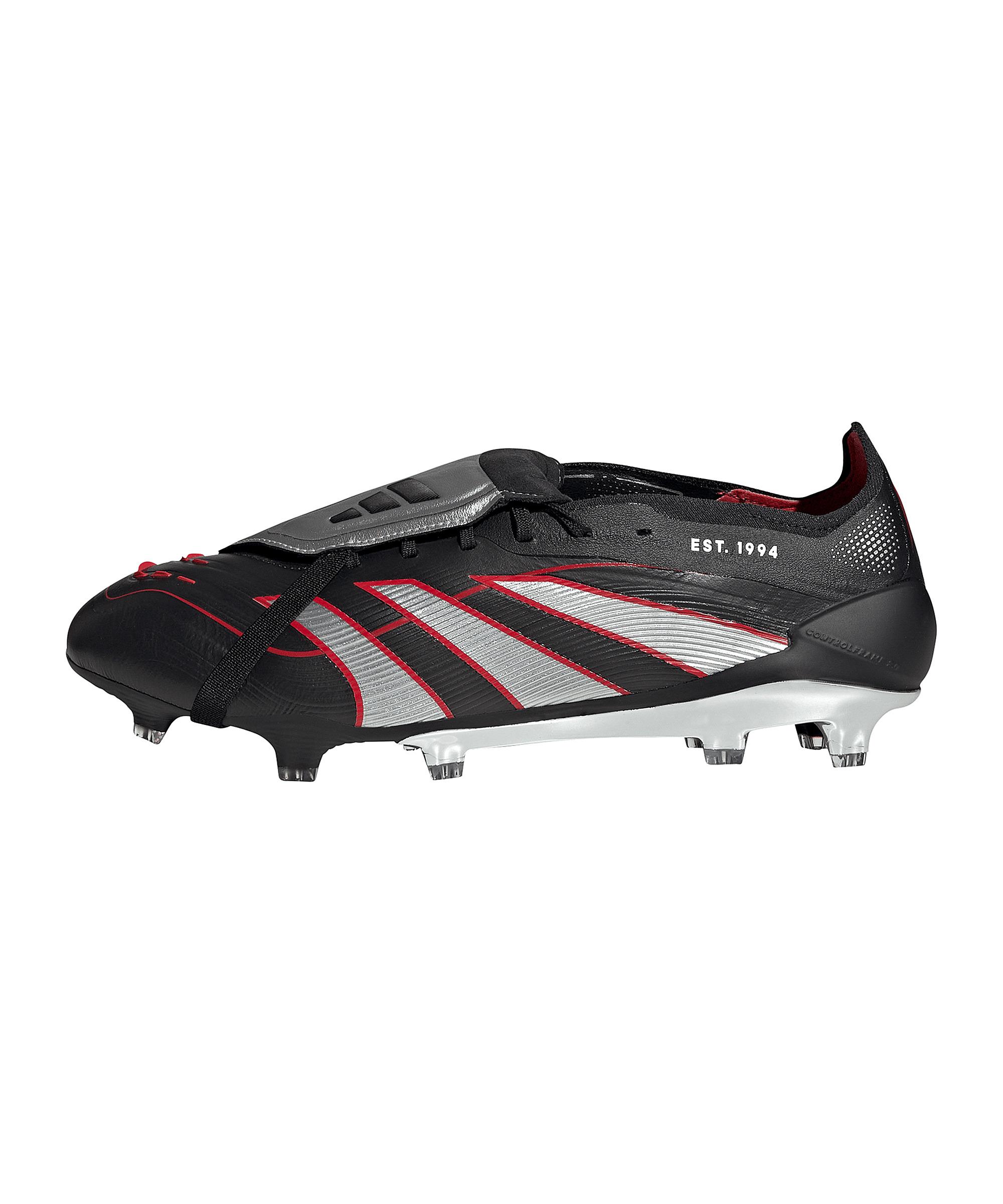 Der schwarze adidas Predator Elite FT Leather FG mit Umschlagzunge ist die seltenenbsp;Topmodell-Auflage mit Leder-Upper fuuml;r Erwachsene mit Control-Charakteristik. Diese feinfuuml;hligen adidas Rasenfuszlig;ballschuhenbsp;kommen mit Nockensohle fuuml;r festen Naturrasen. Diese Schauen wir uns die thematisch schouml;n designten Boots im Detail an: adidas Predator der Obsidian Strike Edition mit Leder-Upper adidas bringtnbsp;regelmauml;szlig;ig eine Leder-Versionnbsp;vom Predator heraus:nbsp;Und das hier ist die Version fuuml;r 2025. Dunkel,nbsp;dynamisch, wuchtig ... aber feinfuuml;hlig mit diesem unverwecheslbaren Leder-Touch. Wer dasnbsp;Beste aus beiden Weltennbsp;haben will, hat hiernbsp;wieder die seltene Chance mitnbsp;der Obsidian Strike Edition: einnbsp;Predator Elite FGnbsp;und ein Predator League FG mit feinem Lederuuml;berzug und sehr krispem Colorway mit Schwarz, Akzentlinien in Vivid Red und edlem Silver Metallic. Predator Profi-Modell von adidas adidas Elite Fuszlig;ballschuhe sind kompromisslos die am besten ausgestatteten Optionen im Lineup. Klar konzipiert als absolutes Profi-Material fuuml;r Weltklasse-Fuszlig;baller wie Gabriel Jesus oder Jude Bellingham. Genau diese Boots bekommst du hier. Den Predator Elite bietet dir adidas in drei Varianten an. Hier bekommst du die sehr schouml;ne Klassik-Variante mit Fold-Over-Tongue. Fuuml;r alle, die volle Kontrolle und Prauml;zision wollen Egal ob Midfielder oder Striker, ob Standard-Spezialist oder Strafraumwiesel - der Predator gibt dir prauml;zise dosierbaren Grip und volle Kontrolle uuml;ber Ball und Boden. Genau das, was sich technisch starke Control Player wuuml;nschen. adidas spricht hier marketingspektakulauml;r von quot;Redefined Predator Control DNArdquo;. Wir halten nicht viel von Marketing-Blabla. Aber wir halten den adidas Predator durch die gesamte Modellpalette hindurch fuuml;r absolut geeignet, um deine Fauml;higkeiten voll auf den Platz zu bringen.lt;. Mit FG-Sohle fuuml;r festen Naturrasen Die adidas FG-Rasensohle fuuml;r den Predator kommt mit markantem Nockenprofil. FG steht fuuml;r Firm Ground (also festen Naturrasen). Die eigenwilligen Dreiecksfluuml;gelnocken sind speziell entwickelt und strategisch passend platziert. Die Sohlenkonstruktion gibt dem adidas Predator auf festem Naturrasen seine typische Control-Charakteristik mit wendiger Performance in alle Richtungen. Die ELITE Topmodelle geben mit ihrer detailreich designten High-End-FG-Sohle den Predator-Signature Look vor. Dieser zieht sich durch die Modell-Linie und gibt jeder Preisstufe darunter etwas vom Look amp; Feel der Spitzen-Predators. Und die Dreieckfluuml;gelnocken funktionieren selbst bei den preiswerteren FG-Modellen exzellent. Fuuml;r den klassischen Vereinsbetrieb auf Naturrasenspielfeld die perfekte Sohlenwahl. Groszlig;artig ausgetattet und absolut Top Tier Folgende Features und Vorteile bieten dir die adidas Predator Elite FT Leather FG Fuszlig;ballschuhe: Klassische Umschlagzunge mit beschriftetem Gummihalteband fuuml;r echte Old-School-Vibes Mit Schnuuml;rung fein dosierbar und direkt durchs Upper fuuml;r den perfekten individuellen Fit PRIMEKNIT-Kragen duuml;nn, elastisch anschmiegsam und leicht Echtes Leder-Uppernbsp;fuuml;r tollen Touch, Top Level Passform und Komfort STRIKESKIN Predator-typische 3D-Gummilippen fuuml;r uuml;berlegenen Grip und Drall am Ball Predator 3-Stripes geschwungene Version der drei adidas-Streifen fuuml;r einen kraftvollen Signature-Look CONTROLFRAME 2.0 Topmodell-Sohle mit Signature-Look und tollen Features fuuml;r Control-Player: Hightech-Kunststoff sehr biegsames und hochwertiges Sohlenmaterial fuuml;r professionelle Anspruuml;che Perfektes Profil fuuml;r festen Naturrasen Dreifluuml;gelnocken fuuml;r wendige Agilitauml;t, uuml;berraschende Richtungswechsel und festen Schuss-Stand Stuuml;tzende Fersenkappe fuuml;r stabilisierenden Support bei dynamischen Moves und prauml;zisen Schuuml;ssen Antirutsch-Einlegesohle perforiert, superleicht und fuszlig;fixierend fuuml;r optimale Verbindung zur Sohle Direkt vom adidas autorisierten Hauml;ndler Bei 11teamsports kannst du adidas Predator Fuszlig;ballschuhe guuml;nstig kaufen. Als Top Tier Fuszlig;ballspezialist in Europa bieten wir dir selbstverstauml;ndlich das komplette Lineup - inklusive der richtig heiszlig;en Exklusive-Modellen, Limited Runs und tollen Special Editions. Produktdetails: Typ: adidas Rasenfuszlig;ballschuhe Grouml;szlig;enlauf: fuuml;r Erwachsene (Unisex fuuml;r Herren und Damen) Silo: Predator Modell: Elite Preisstufe: Topmodell Sohle: FG (Firm Ground) Einsatzbereich: fester Naturrasen Kragenschnitt: Umschlagzunge Material: Obermaterial: Textil, Leder Innenfutter: Textil Laufsohle: sonstiges nbsp;