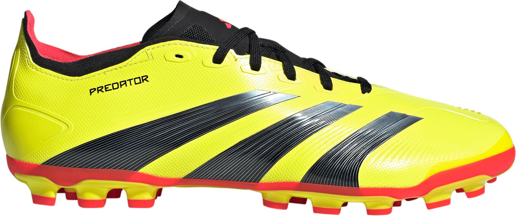 Fußballschuhe aus der Predator-Kollektion, die u.a. von Paul Pogba und Toni Duggan getragen wird; auffälliges Design mit seitlichen 3-Streifen; weiches Obermaterial mit elastischer Zunge, passt sich individuell an den Fuß an; Hybridfeel mit 3D-Struktur und griffigen Strikefins an der Fußinnenseite für besseren Grip und Ballkontrolle; normale Schnürung; Außensohle mit Stollen für optimale Traktion auf Kunstrasen.