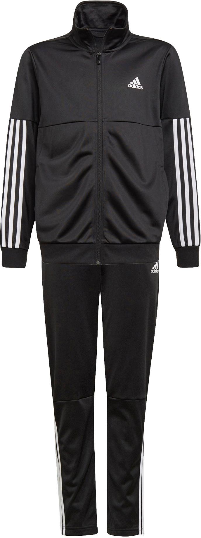 Trainingsanzug für Kinder mit 3-Streifen-Elementen an Ärmeln und Beinen; Stehkragen; durchgehender Frontreißverschluss; 2 Seitentaschen; Abschlüsse mit Rippbündchen; Hose mit elastischen Bund; 2 Taschen; schmale Beinabschlüsse mit Reißverschluss; dieses Primegreen-Produkt wurde aus recycelten Materialien hergestellt, um Kunststoffabfälle zu vermeiden; Material 100% Polyester (recycelt).