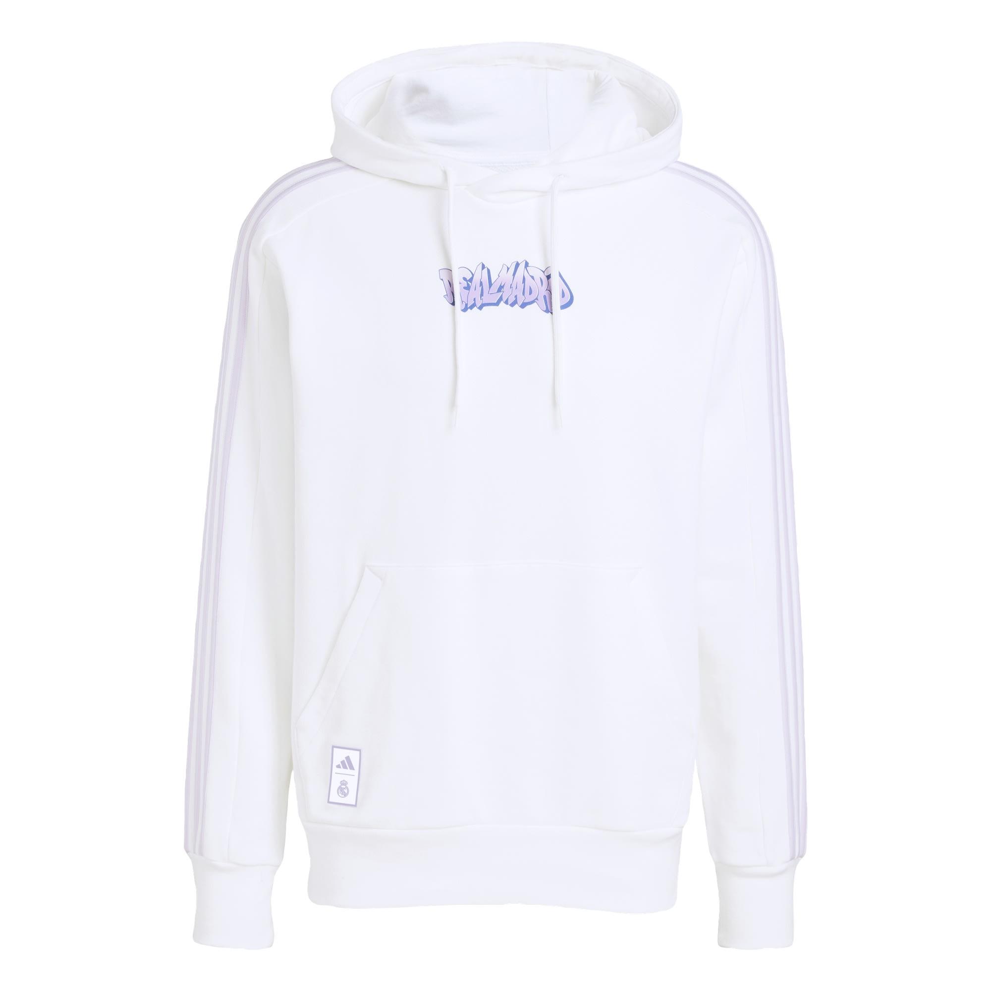 Mit diesem weichen Fußballhoodie zeigst du deine Begeisterung für Real Madrid. Er ist Teil einer adidas Kollektion, die Künstler auf der ganzen Welt feiert, und zeigt die Arbeit des spanischen Duos PichiAvo. Die auffällige Grafik im Signature-Style auf der Rückseite repräsentiert die Fuente de Cibeles, ein Wahrzeichen Madrids, das lange Zeit mit den größten Siegen des Vereins assoziiert wurde.