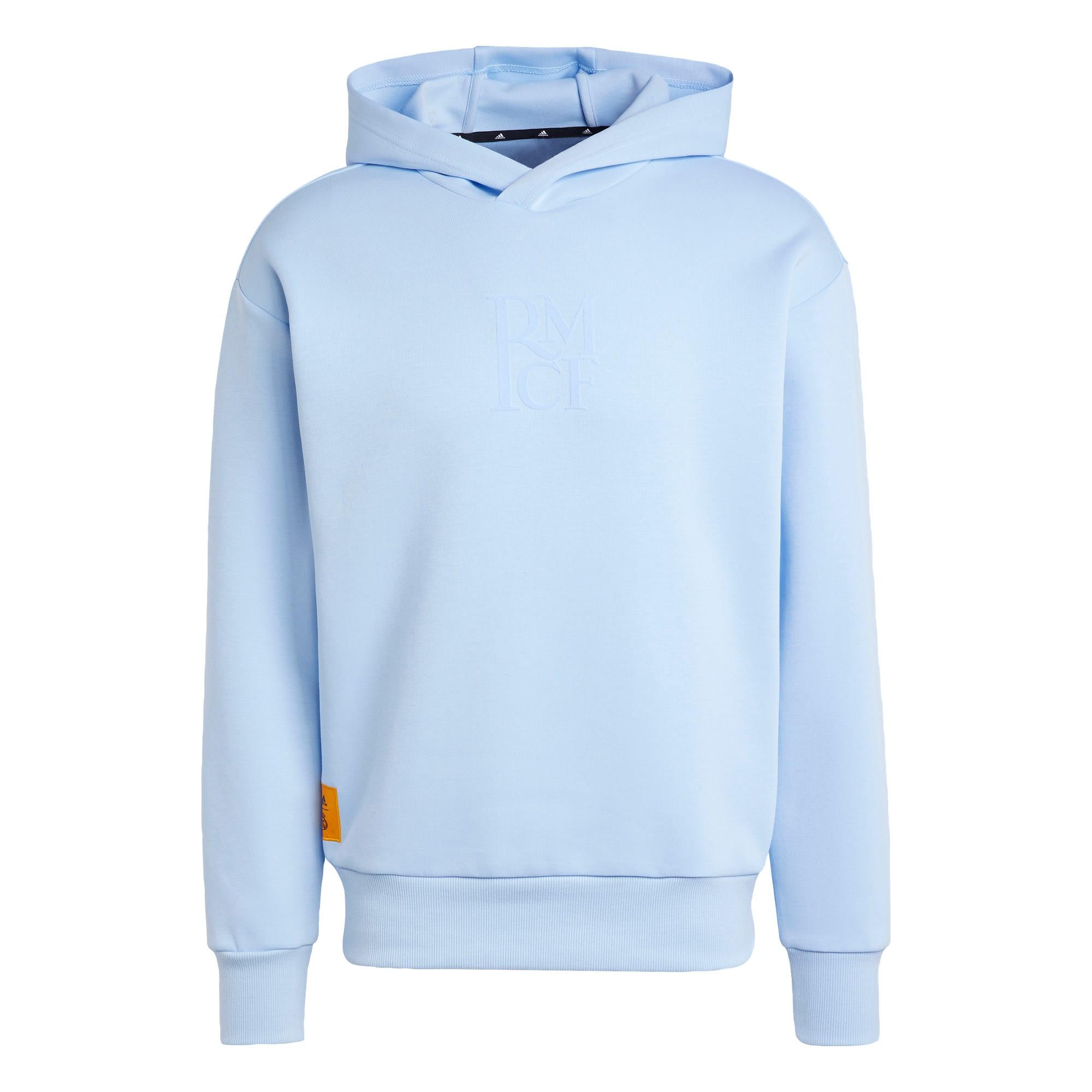 Zeig deine Begeisterung für Real Madrid auf Schritt und Tritt. Dieser Real Madrid Hoodie aus Doppelstrick von adidas ist ein stylishes und funktionales Basic zum Relaxen nach dem Fußball. Kombiniert mit einer Trainingshose oder Jeans wird ein lässiger Look draus. Der Ton in Ton gehaltene „RMCF“-Schriftzug auf der Brust und das dezente Vereinslogo über dem Saum zeigen außerdem deine Fanliebe.