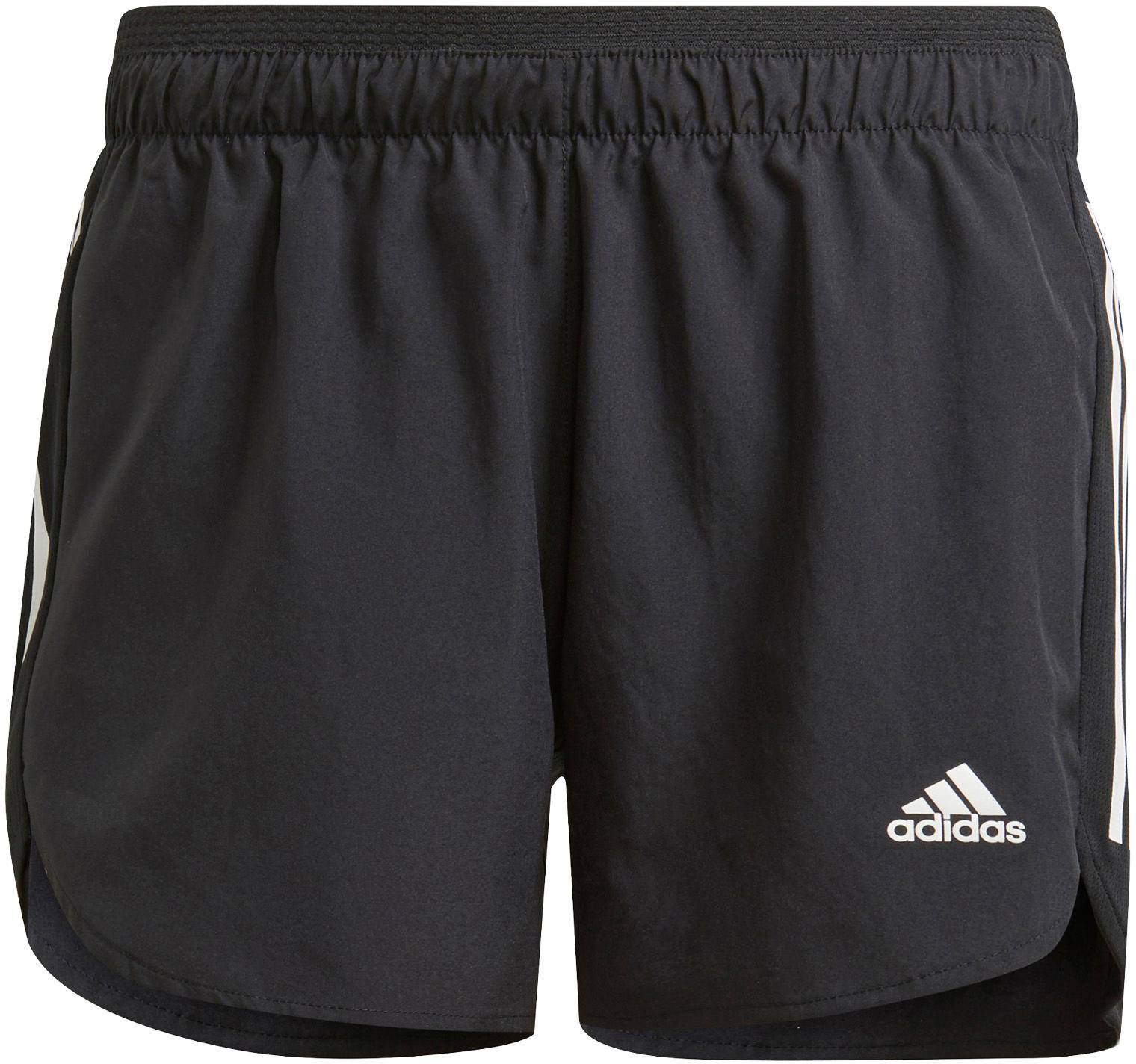 Laufshorts mit feuchtigkeitsregulierender und schnelltrocknender Aeroready-Technologie; elastischer Bund; abgerundete Beinabschlüsse mit Seitenschlitzen; 3-Streifen-Design an den Seiten;Schrittinnenlänge: ca. 8 cm; Material 100% Polyester.