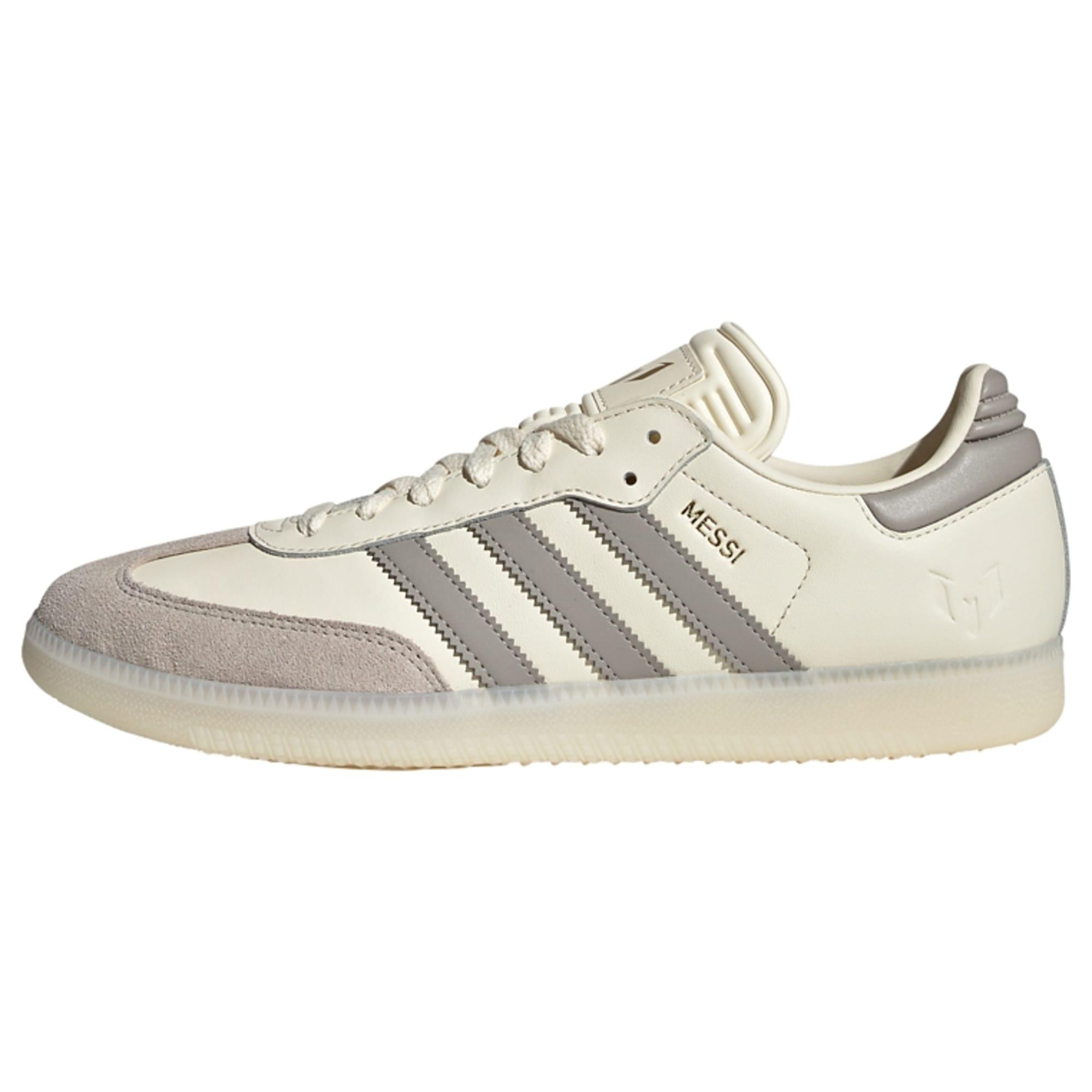 Wenn es auf dem Platz um alles oder nichts geht, kann man auf Lionel Messi zählen. Mit diesem bequemen adidas Samba zeigst du deinen Support für das argentinische Ausnahmetalent auch in der Freizeit. Der 3-Streifen Klassiker kommt wie gewohnt mit einem Signature-Obermaterial aus Leder und einer griffigen Gummiaußensohle – neu ist der „MESSI“-Schriftzug in Gold-Optik an der Seite.
