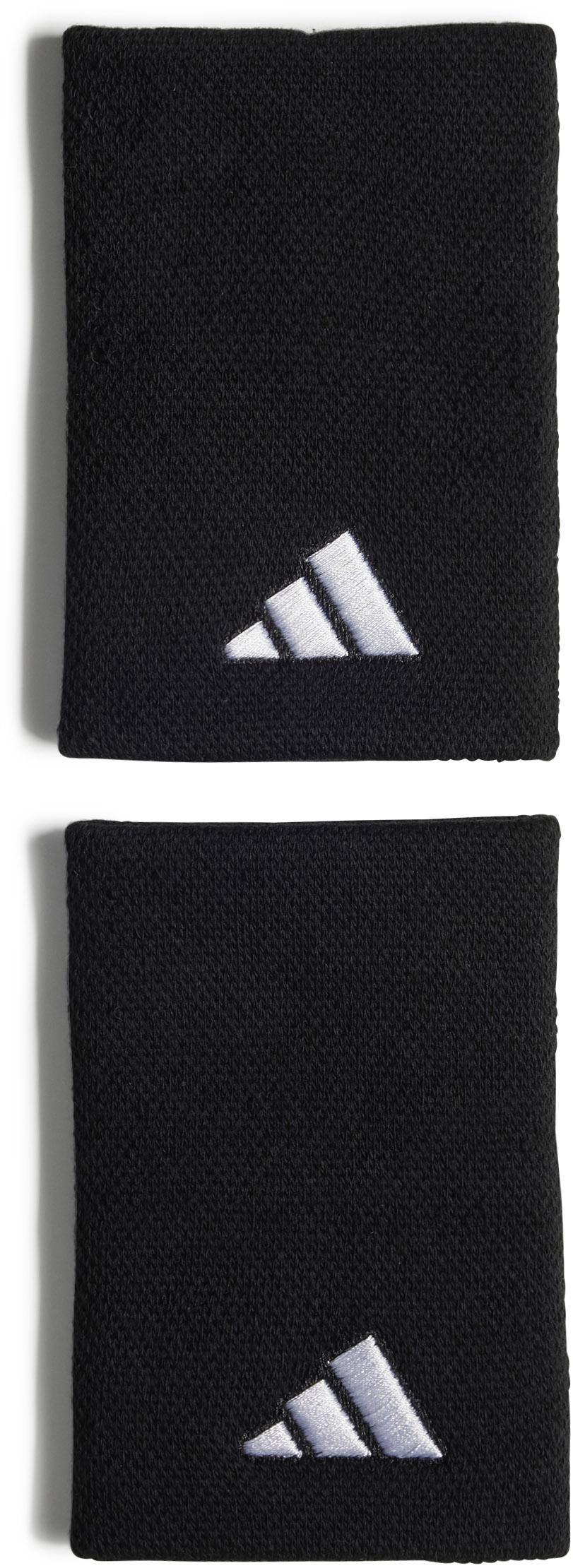 1 Paar extra lange Schweißbänder mit eingesticktem 3-Bar-Logo; elastisch; mit Recyclingmaterial hergestellt; Material 74% Polyester (recycelt), 23% Baumwolle, 3% Elastan.