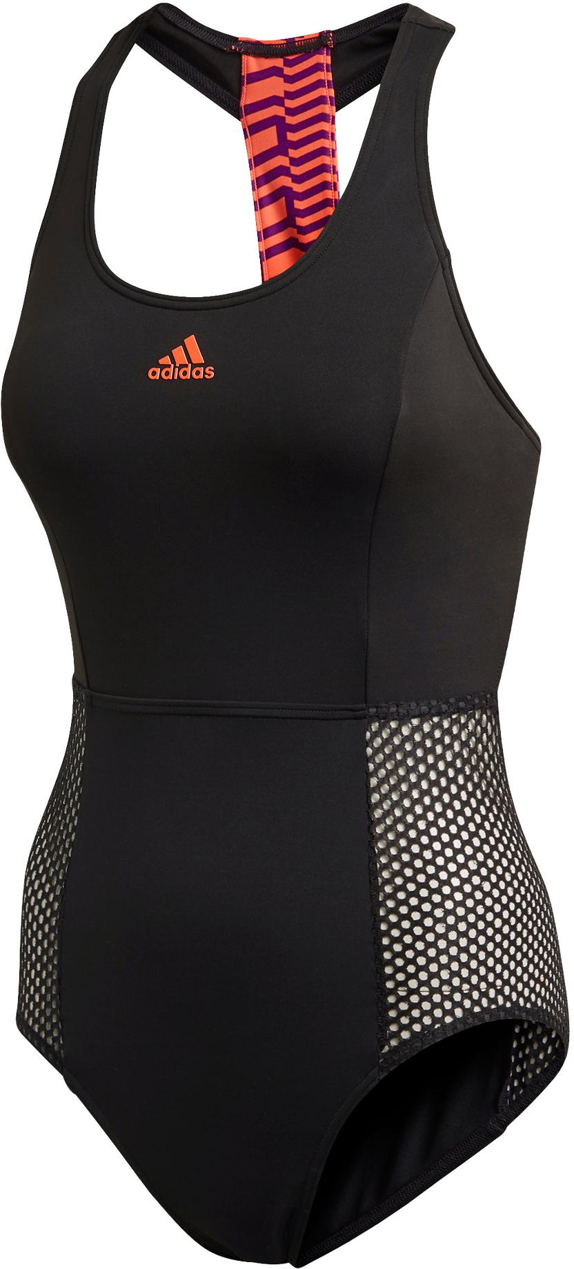 adidas Schwimmanzug in komfortabler Passform für mehr Bewegungsfreiheit; herausnehmbare Polster; chlorresistentes Infinitex® Fitness Eco-Gewebe; Rundhalsausschnitt; Ringerrücken; tiefer Rückenausschnitt; Markenschriftzug auf der Rückseite; seitliche. semitransparente Mesh-Einsätze; weicher und geschmeidiger Griff; Logo-Print auf der Vorderseite; Material 85% Polyester, 15% Elastan.