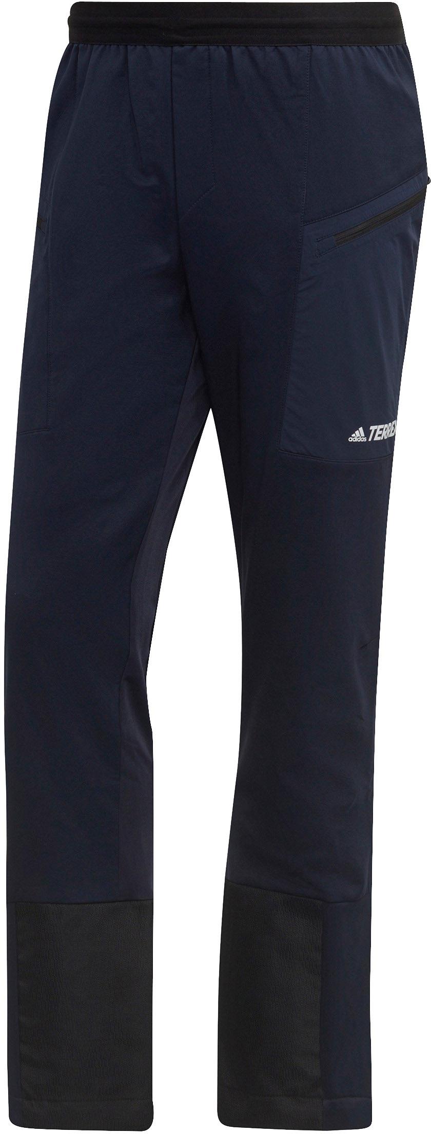 Skitourenhose aus der Terrex-Serie; Mix aus stretchigem Softshell und Fleece; elastischer Bund mit Kordelzug; 2 Reißverschlusstaschen; seitliche Reißverschlusstaschen; Beinreißverschlüsse; Slim-Fit, dauerhaft wasserabweisende, ohne PFC hergestellte Beschichtung; enthält Recyclingmaterial; Material 85% Polyamid, 15% Elastan, Material II 88% Polyamid, 12% Elastan.