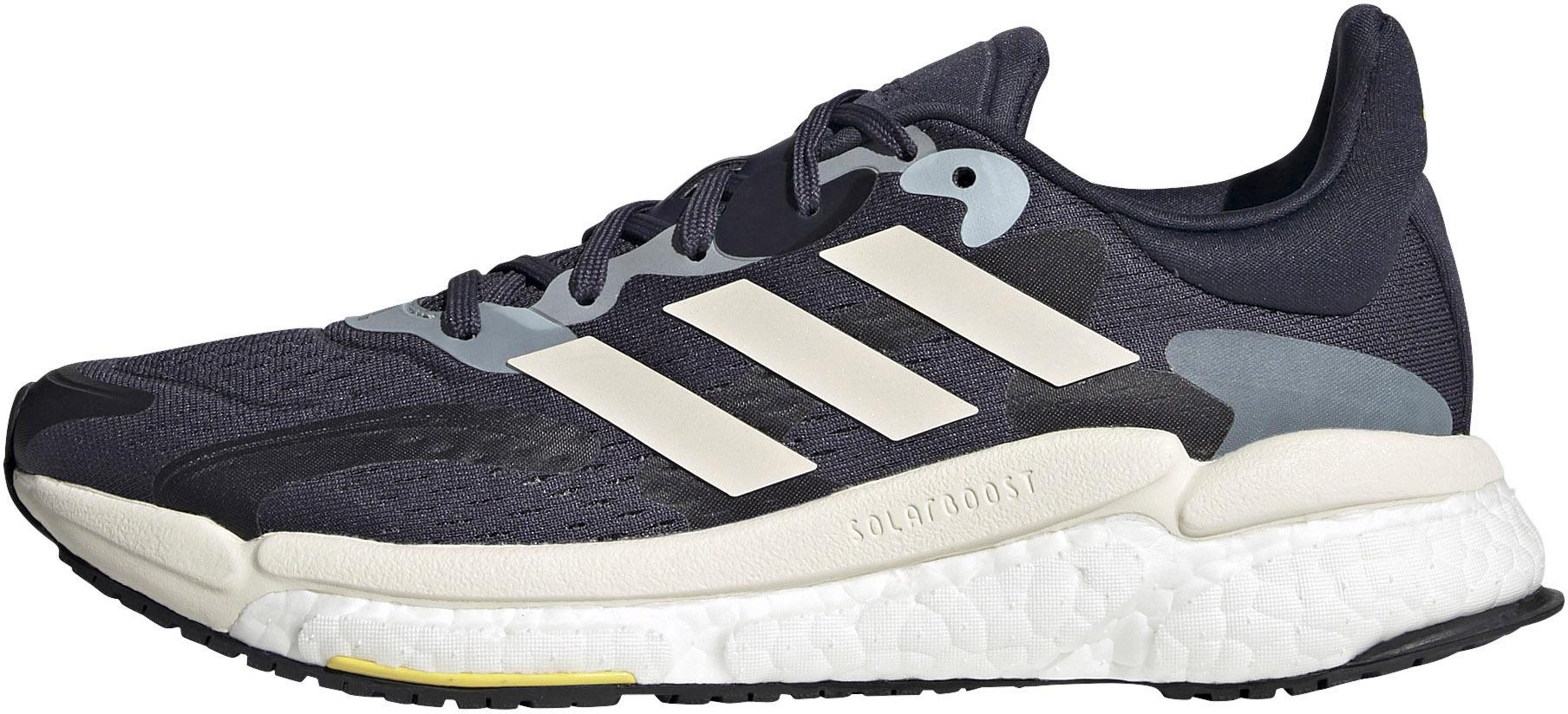 Damen-Laufschuhe mit atmungsaktivem Mesh-Obermaterial; weicher Schaft; Textilfutter; klassische Schnürung; mit energierückführender BOOST™-Zwischensohle; das Linear Energy Push-System sorgt für mehr Steifigkeit im Vorfußbereich, was die Abrollbewegung noch reaktionsfreudiger macht; Control Rail aus EVA; Continental™-Stretchweb-Außensohle mit leichtem Profil; 3-Streifen-Design; Sprengung: 10 mm; für Neutralläuferinnen mit normaler Pronation geeignet; ideal für Straße und Park; Gewicht: ca. 610 g/Gr. 42 2/3; mit recycelten Materialien hergestellt.