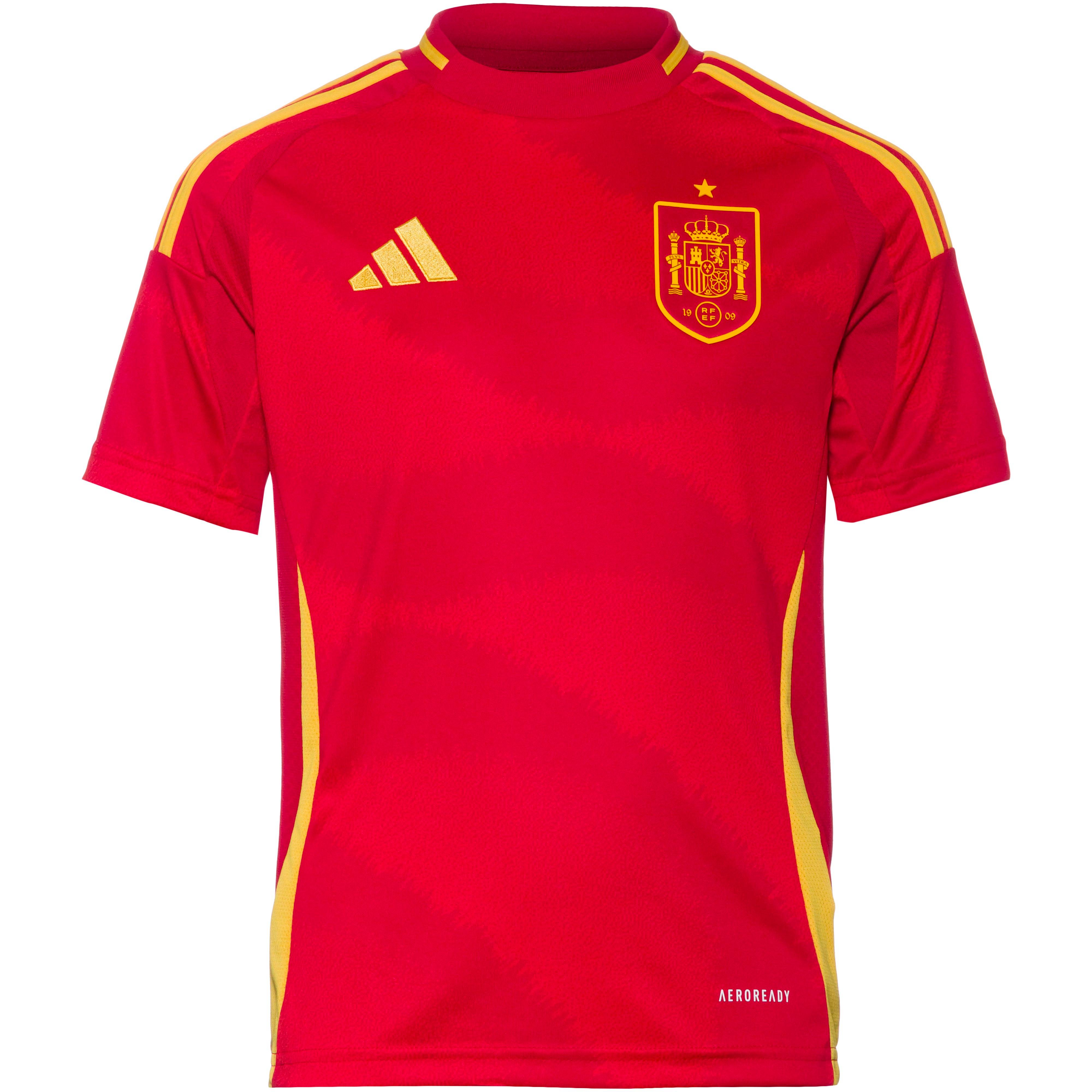 Fußballtrikot für Kinder, der spanischen Nationalmannschaft für die EM2024; mit feuchtigkeitsregulierender, atmungsaktiver und schnelltrocknender AERO.RDY-Technologie; Rundhalsausschnitt; die Raglanärmel sorgen für optimale Bewegungsfreiheit; die strategisch platzierten Mesh-Einsätze im Ärmelbereich sorgen für optimale Ventilation; Material 100% Polyester (recycelt).