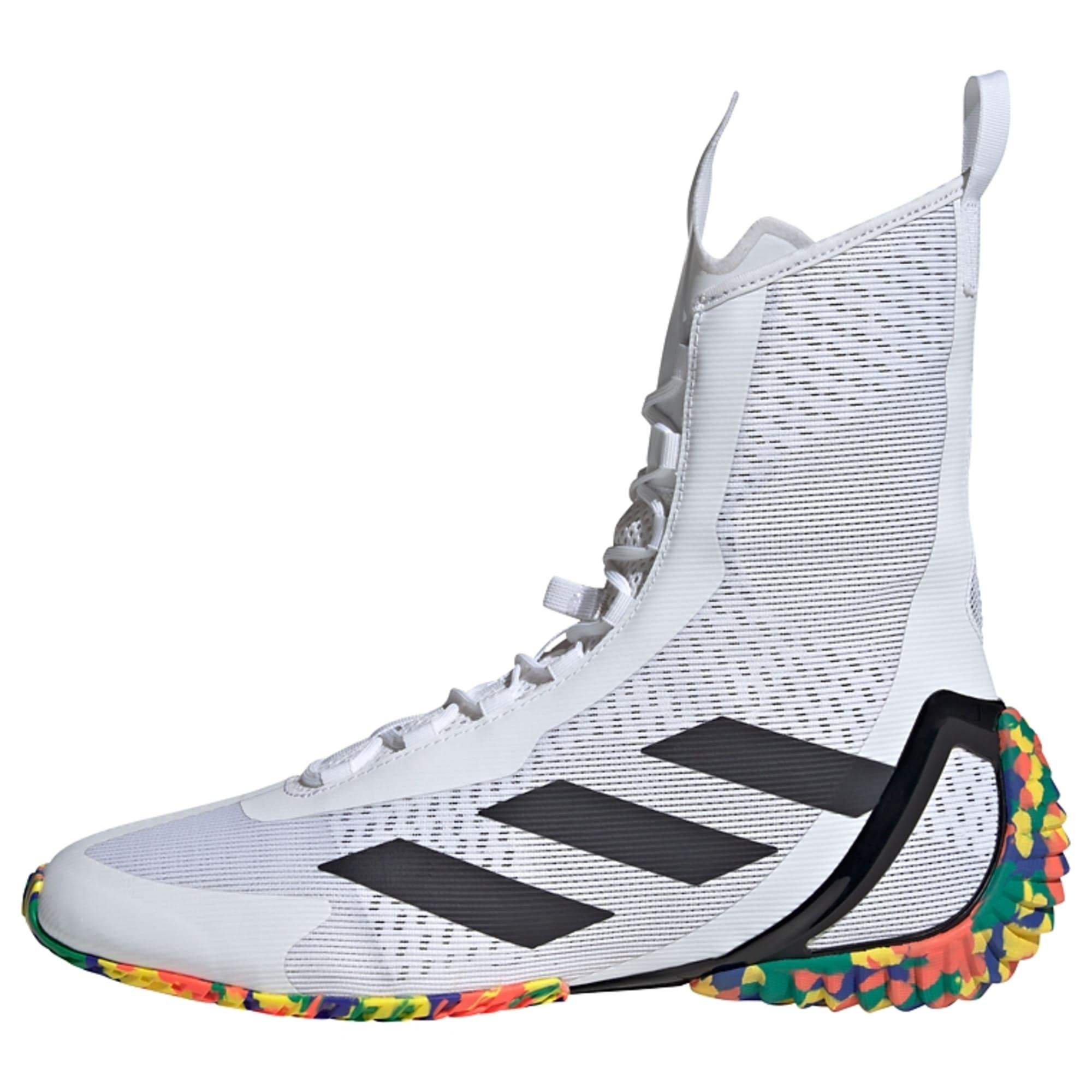 Wenn aus besser noch besser wird. Dieser adidas Speedex Ultra Schuh wurde basierend auf dem Feedback von Profi-Boxer_innen entwickelt. Er hat ein Obermaterial aus leichtem, luftigem Mesh und eine perforierte EVA-Innenschicht, damit du es auch bei intensiven Workouts bequem hast. Die Schaumstoffpolster im Fersenbereich garantieren, dass der Fuß sicher im Schuh sitzt und du alles in deine Performance legen kannst – Ducken, Ausweichen, Schlagen. Das Torsion System ermöglicht außerdem eine optimierte Bewegungsfreiheit von Rück- zu Vorfuß.Mit einem Recycling-Anteil von mindestens 50 % im Obermaterial ist dieses Produkt nur eine unserer Lösungen im Kampf gegen Plastikmüll.