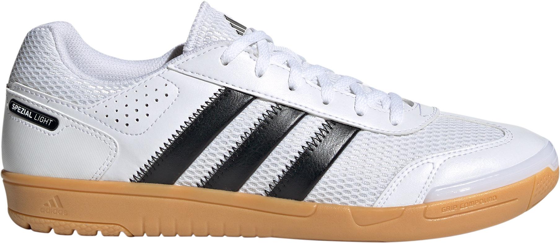 Leichte Hallenschuhe, ideal für Volleyball und andere Sportarten; Obermaterial aus atmungsaktivem Mesh; seitliche 3-Streifen; normale Schnürung; abriebfester TPU-Zehenschutz; Textilfutter; griffige Gummi-Außensohle; mit Recyclingmaterial hergestellt.