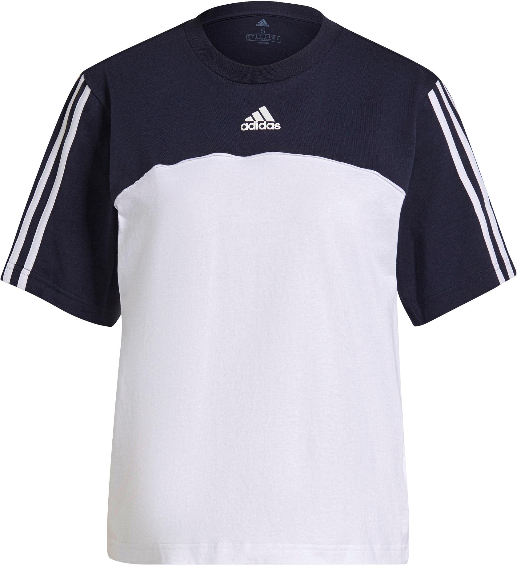 T-Shirt im Colorblock-Design; Logo-Detail auf der Vorderseite; 3-Streifen-Design an den Ärmeln; moderne, lockere Passform; gerippter Rundhalsausschnitt; verlängerte Ärmel für einen urbanen Look; mit zertifizierter Baumwolle der Better Cotton Initiative; Material 100% Baumwolle.