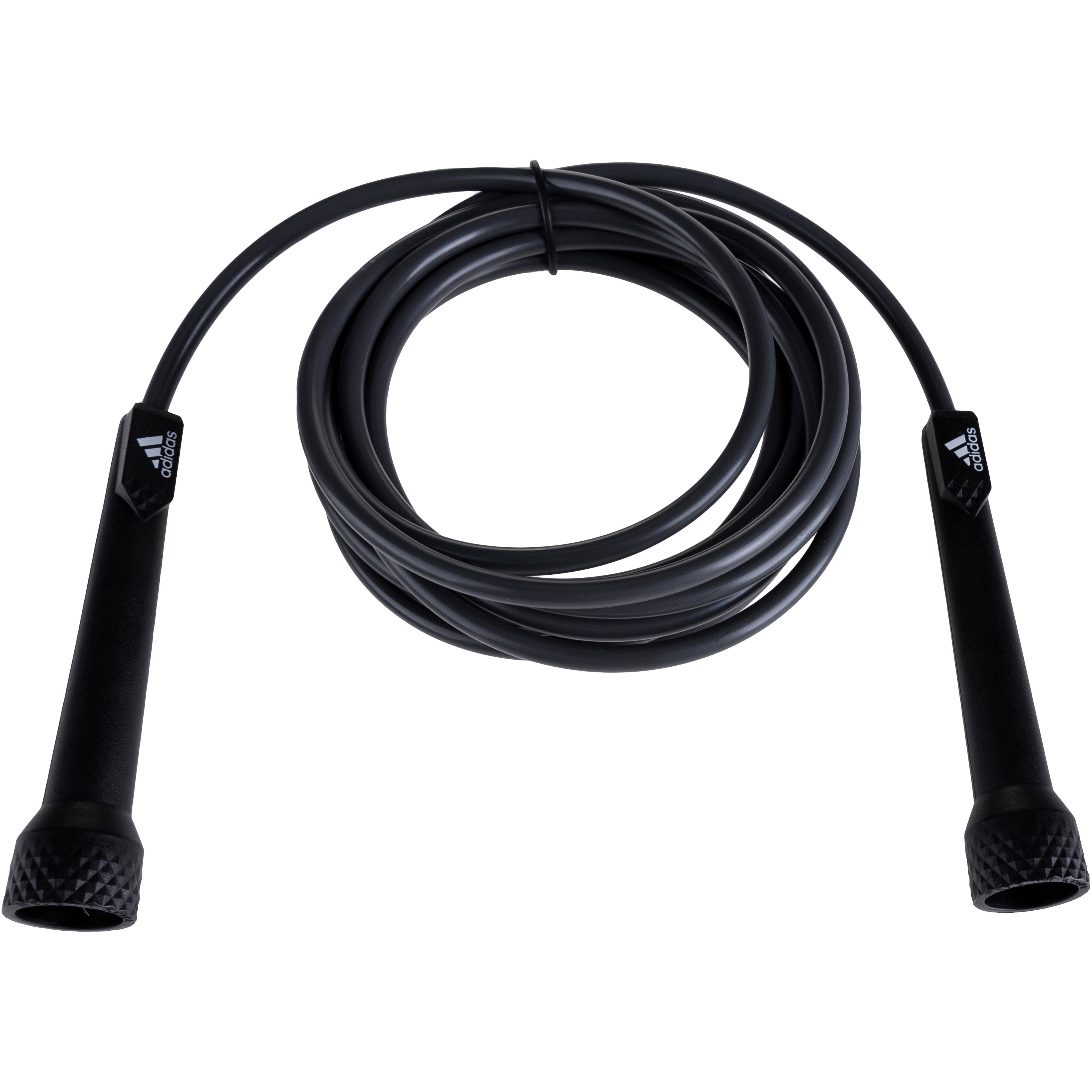 Springseil mit strapazierfähiger Kunststoffstruktur und leicht konischer Form; integrierte Daumenauflage an den Griffen für eine bessere Kontrolle; gummiertes, über Stopper leicht verstellbare Länge; ermöglicht vielfältige Trainingsstile; ideal zum Aufbau von Ausdauer und Koordination; Gesamtlänge: ca. 280 cm.