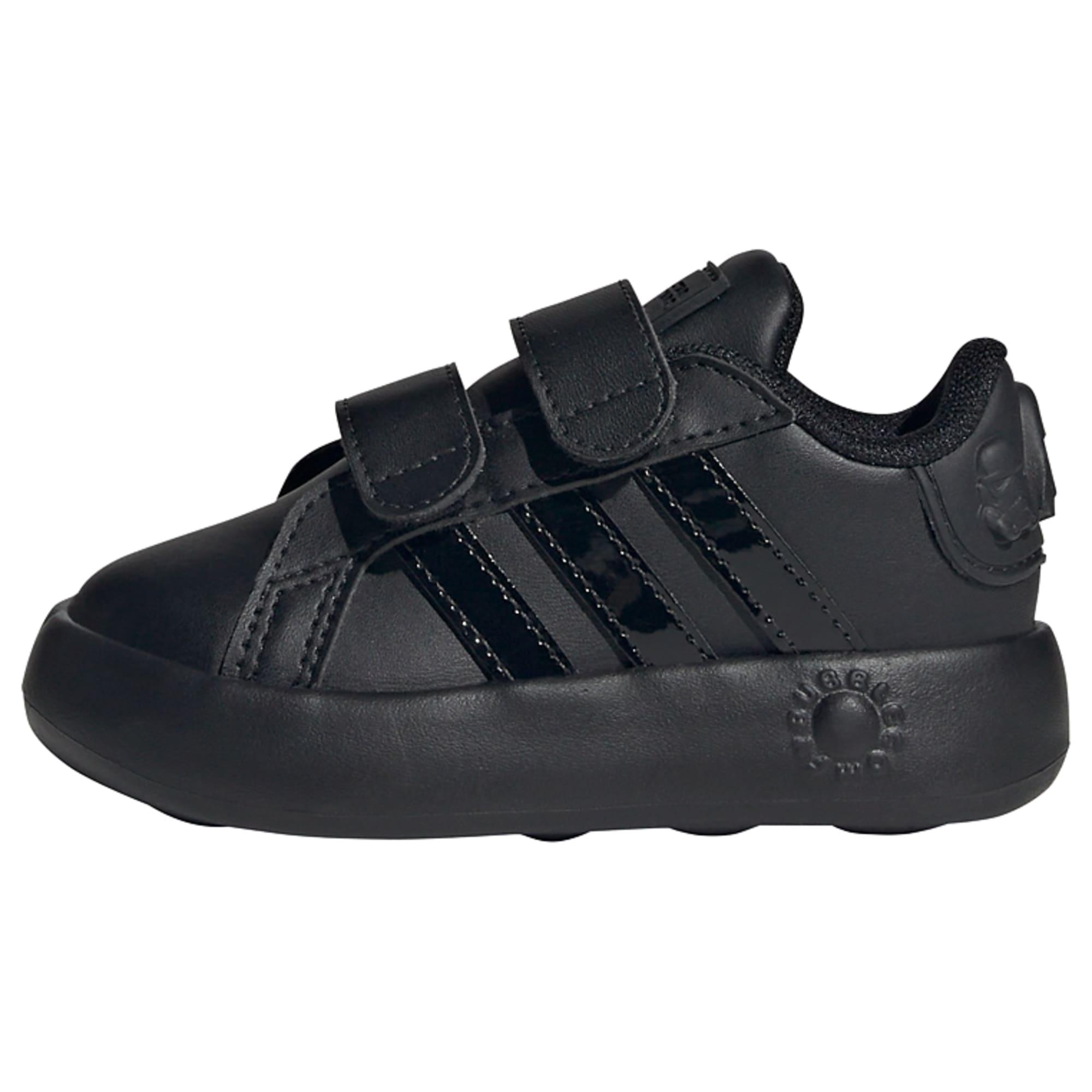 Dieser adidas Schuh für Babys und Kleinkinder ist perfekt für kleine Rebell_innen. Das Detail im Fersenbereich kommt mit von Star Wars™ inspirierten Grafiken und wenn dein kleiner Schatz auf Entdeckungsreise geht, sorgt die Sohle für erstklassige Dämpfung. Außerdem garantiert die Kombi aus einteiliger UVA-Außensohle und dem Obermaterial aus Synthetikleder ein Plus an Strapazierfähigkeit – perfekt für die Abenteuer des Alltags. Dieses Produkt ist mit mindestens 20 % recycelten Materialien hergestellt. Die Wiederverwendung bereits vorhandener Materialien hilft uns dabei, Müll zu reduzieren, unsere Abhängigkeit von nicht erneuerbaren Ressourcen einzuschränken und den CO2-Fußabdruck unserer Produkte zu verringern.