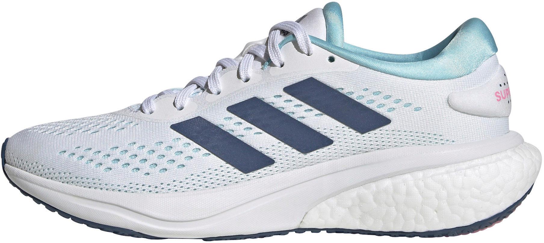 Atmungsaktive Laufschuhe mit einer Hybrid-Zwischensohle;atmungsaktives Obermaterial aus Mesh; klassische Schnürung; weich gepolsterter Schaft; Textilfutter; die Zwischensohle kombiniert die einzigartige Energierückgabe von BOOST™ mit dem federnden Tragegefühl von Bounce; leicht profilierte Außensohle aus Gummi; reflektierende Details; 3-Streifen-Design; reguläre Passform; Sprengung: 10 mm; Neutralschuhe für Normalpronierer; ideal für Straße und Park; dieses Primegreen-Produkt wurde aus recycelten Materialien hergestellt, um Kunststoffabfälle zu vermeiden.