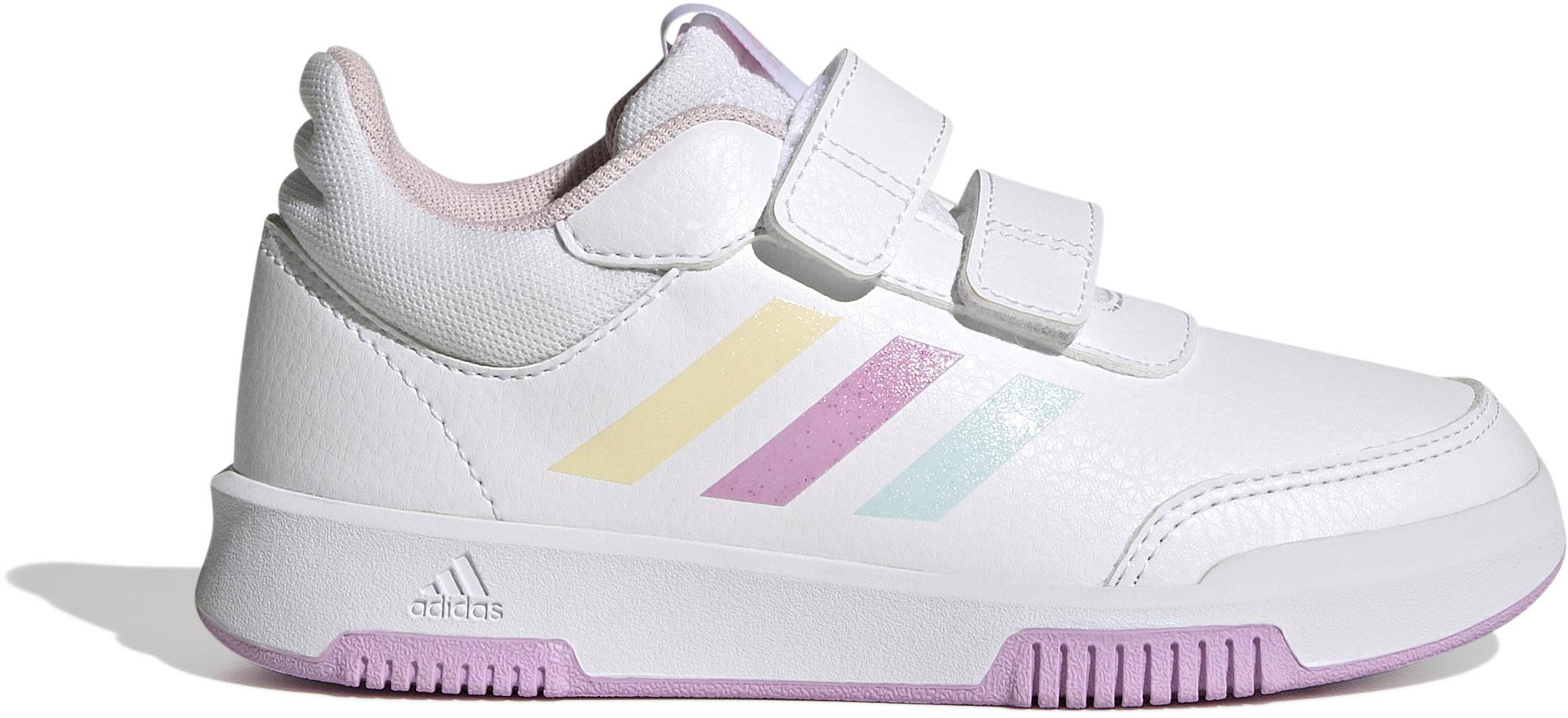 Fitnessschuhe für Kinder mit doppeltem Klettverschluss; Obermaterial aus Kunstleder mit seitlichem 3-Streifen-Design; weich gepolsterte Ferse aus Mesh; abriebfeste Gummi-Außensohle; Labeldetails.