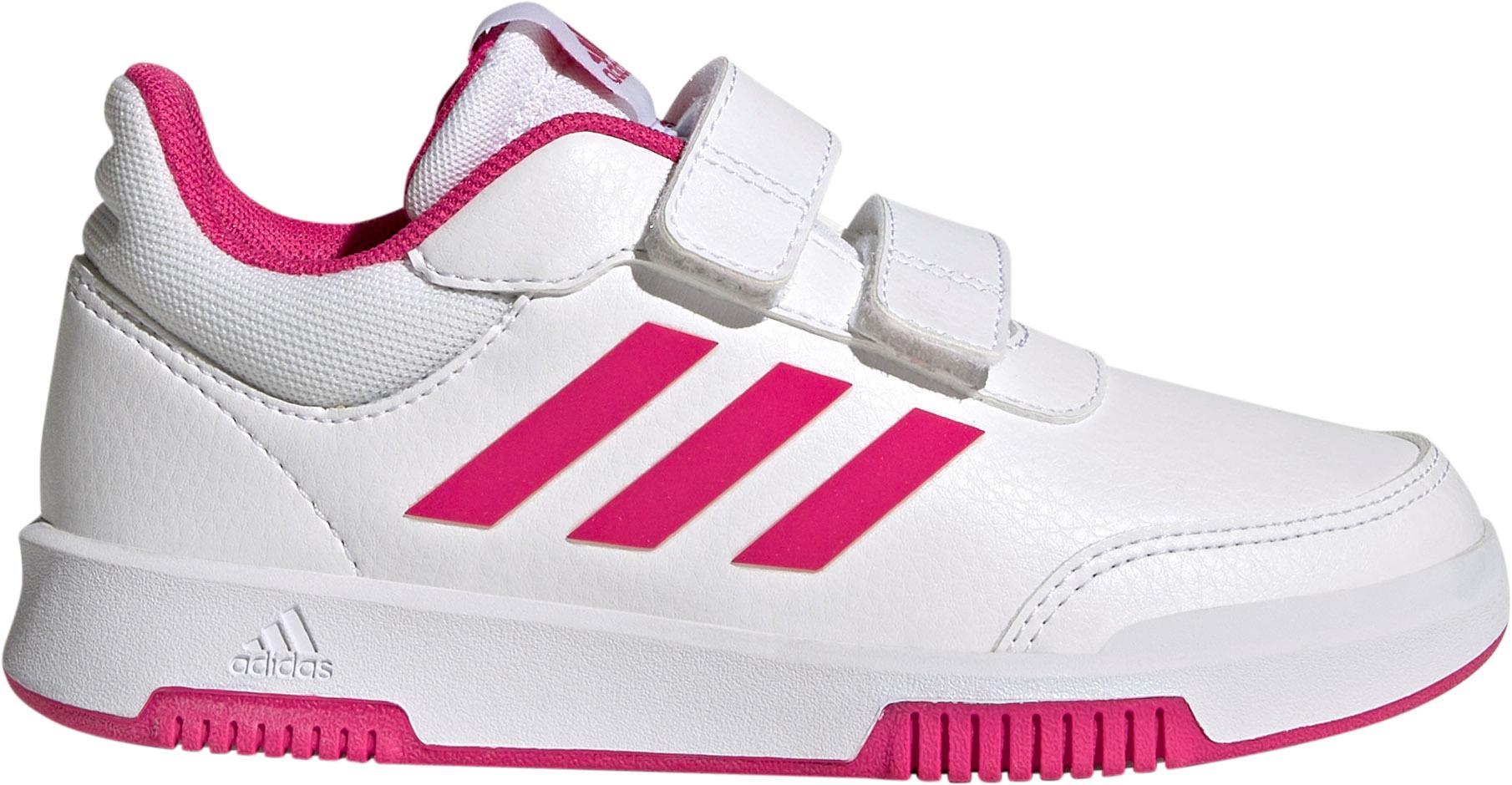 Fitnessschuhe für Kinder mit doppeltem Klettverschluss; Obermaterial aus Kunstleder mit seitlichem 3-Streifen-Design; weich gepolsterte Ferse aus Mesh; abriebfeste Gummi-Außensohle; Labeldetails.