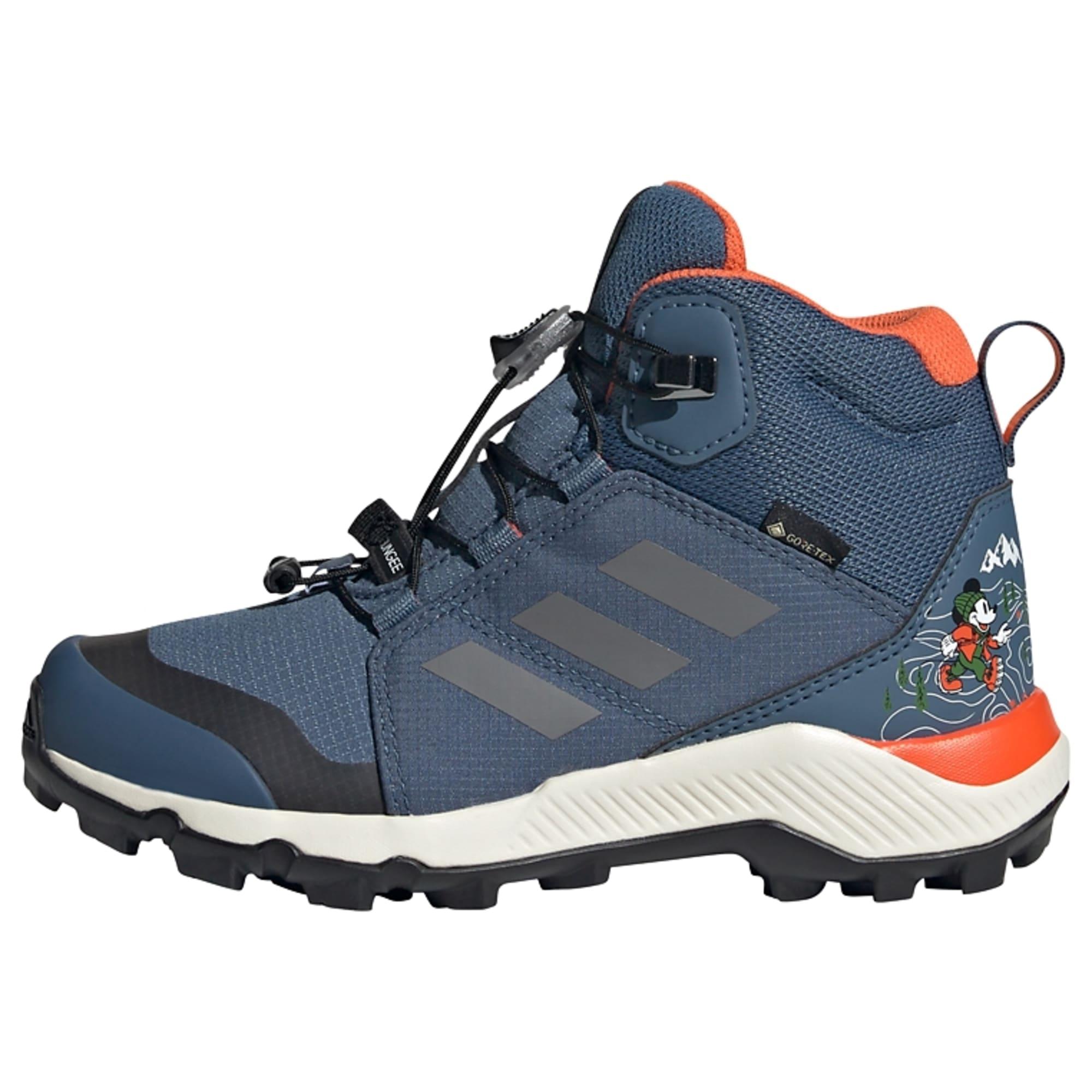 Mit diesem adidas Terrex Disney Wanderschuh für Kinder ist Micky Maus immer am Start. Das halbhoch geschnittene Design kommt mit bewährten Technologien und einer vorgeformten Zehenkappe aus Gummi für optimalen Halt und Strapazierfähigkeit. Außerdem bietet die Außensohle aus Continental™ Gummi zuverlässigen Grip und Stabilität auf den Trails und abseits davon. Die wasserdichte, atmungsaktive GORE-TEX Membran hält Nässe ab und sorgt gleichzeitig für ein angenehm kühles Tragegefühl. On top erleichtert das Speed-Lacing System das An- und Ausziehen und die Adifit Einlegesohle garantiert eine optimale Passform.Dieses Produkt ist mit mindestens 20 % recycelten Materialien hergestellt. Die Wiederverwendung bereits vorhandener Materialien hilft uns dabei, Müll zu reduzieren, unsere Abhängigkeit von nicht erneuerbaren Ressourcen einzuschränken und den CO2-Fußabdruck unserer Produkte zu verringern.