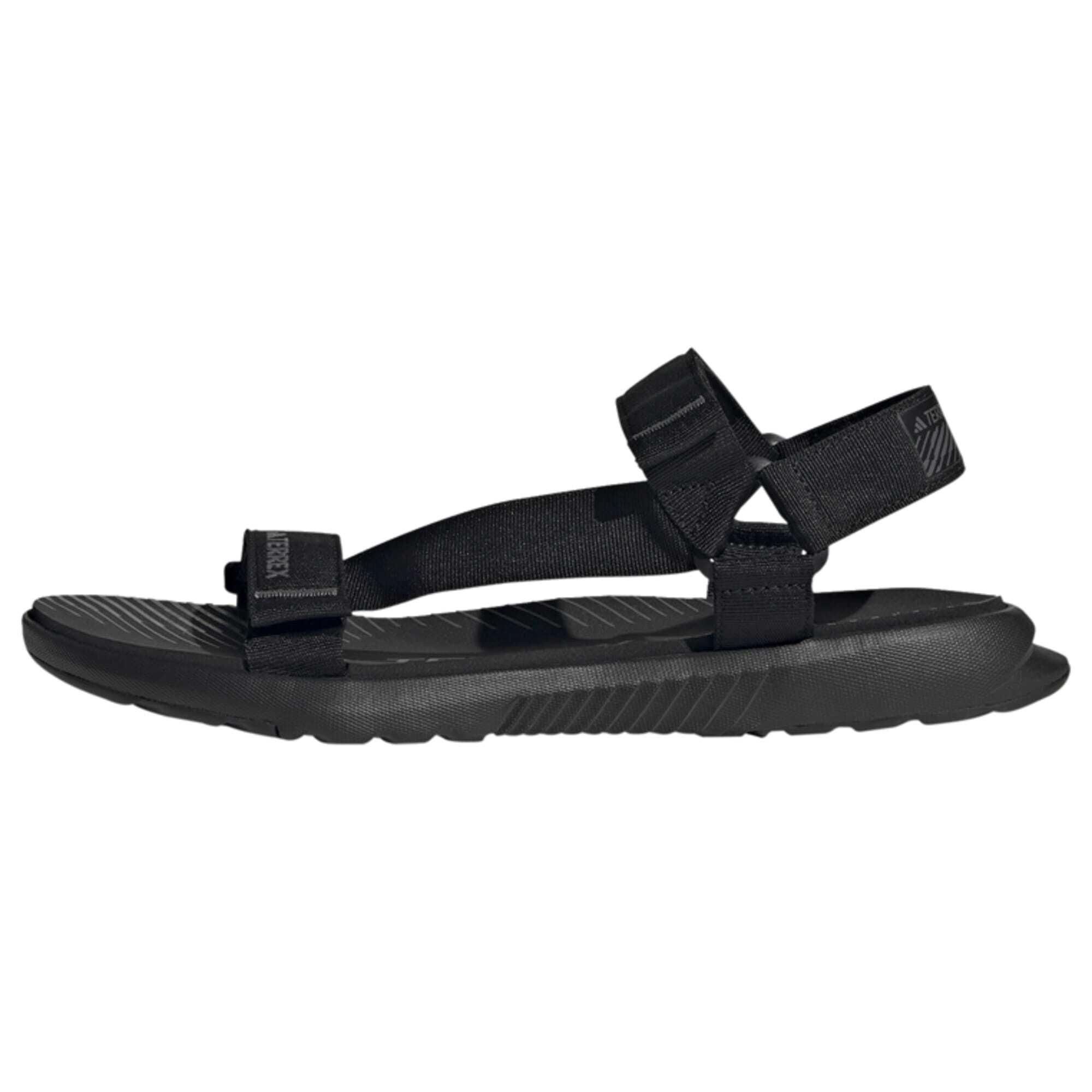 Diese adidas TERREX Sandale ist der perfekte Begleiter für Outdoor-Abenteuer an warmen Tagen. Sie hat eine leichte EVA-Zwischensohle für Dämpfung und langanhaltenden Komfort, egal ob du in der Stadt unterwegs bist oder in der freien Natur entspannst. Die verstellbaren Riemen mit Klettverschluss garantieren dabei einen sicheren Sitz. Die Traxion Gummiaußensohle gibt dir auch auf rutschigem Gelände wie nassem Fels optimalen Grip.Dieses Produkt ist Teil unseres Engagements gegen Plastikmüll: Es ist mit verschiedenen recycelten Materialien hergestellt und hat ein Obermaterial mit mindestens 50 % Recycling-Anteil.