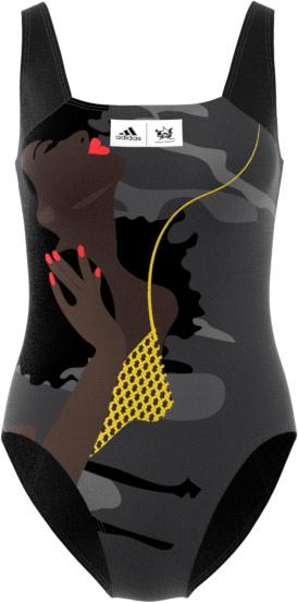 Badeanzug mit raffiniertem Print und Carré-Ausschnitt; aus chlorbeständigem und recyceltem Infinitex® Fitness Eco-Material; breite Träger; Innen-BH mit herausnehmbaren Pads; tiefer Rückenausschnitt; 3-Streifen-Design auf der Rückseite; Material 80% Polyamid (recycelt), 20% Elastan.
