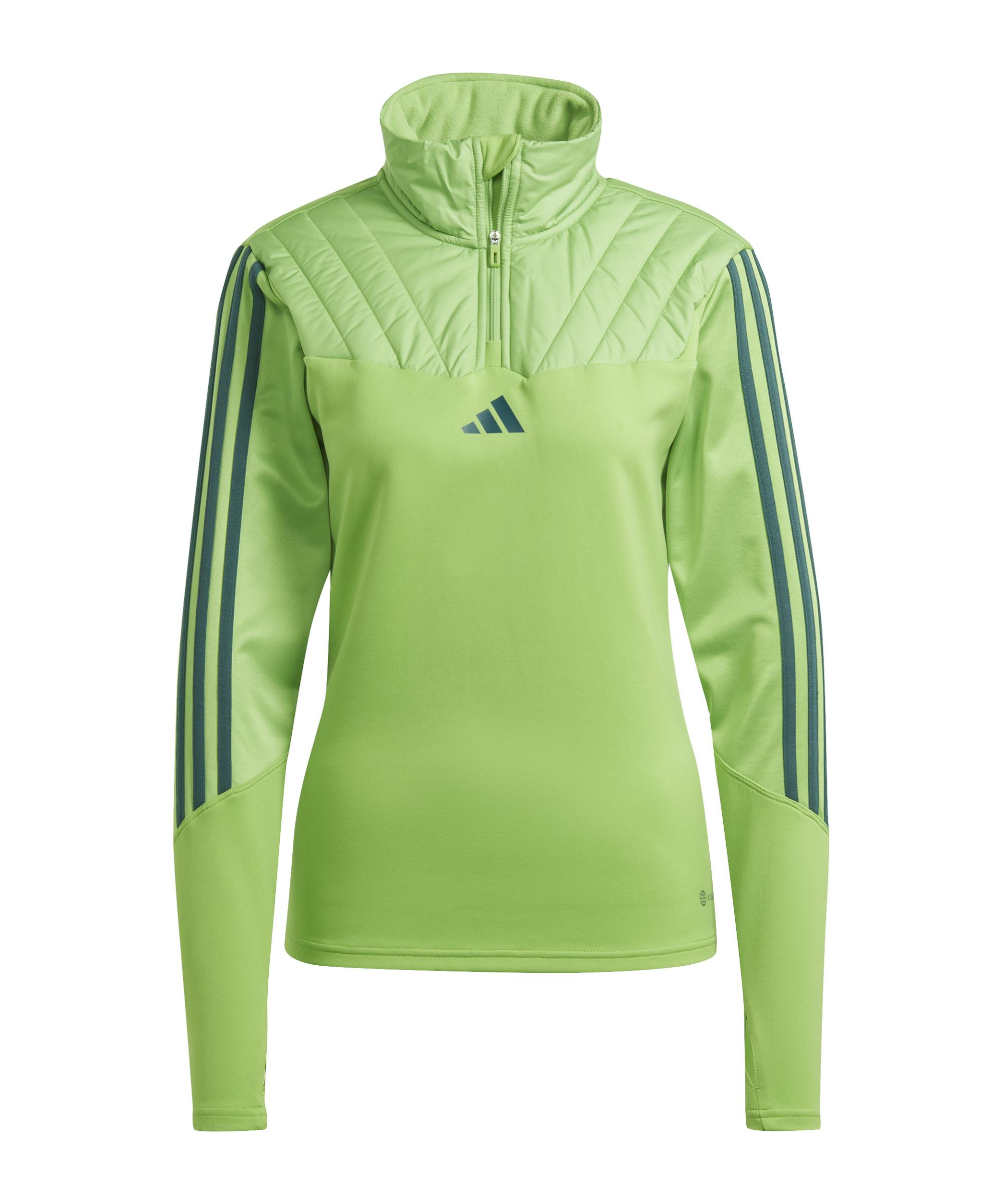 Mit dem Tiro Damen-Oberteil in Grün bringt adidas ein Produkt an den Start, mit dem du bestens ausgestattet bist und beweisen wirst, was in dir steckt. Dieses super bequeme, atmungsaktive, schweißableitende, wärmende und leichte Tiro-Oberteil überzeugt auf ganzer Linie. Du bekommst einen optimalen Schutz geboten. Hiermit bekommst du die passende Ausstattung für das Training und die Aufwärmphase vor dem Spiel. Doch nicht nur beim Sport – auch abseits des Spielfelds beweist das Oberteil echten Stil und praktische Funktionalität. Ein schnelles und bequemes Verschließen dieses Shirts macht der Reißverschluss möglich. Durch einen modischen Stehkragen sowie Durch einen normallangen Schnitt überzeugt dieses langärmlige Oberteil. Die Daumenöffnungen sorgen für sicheren Halt ohne Verrutschen, sowie wohlig warme Hände. Produktdetails: Extras: Daumenöffnung Ausschnitt: Stehkragen Langärmlig Technologie: AEROREADY Eigenschaften: leicht, schweißableitend, atmungsaktiv Schutz Material: 100% Polyester