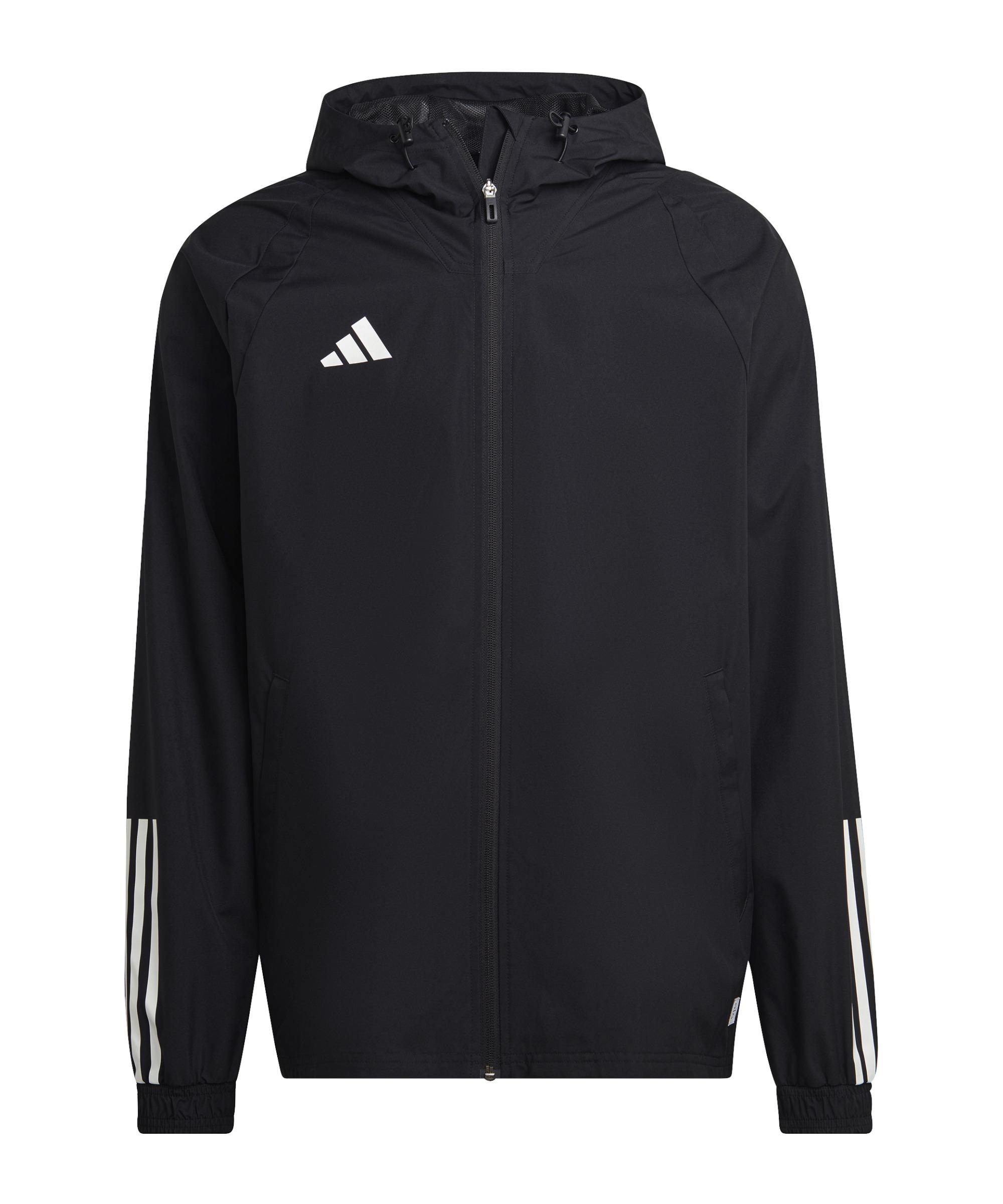 Repräsentiert euer Team – die normal sitzende Tiro-Jacke in Blau ist die perfekte Unterstützung für eure Mannschaft. Auf jeden Fall die perfekte Entscheidung – die Jacke von adidas. Sie ist bequem, elastisch und leicht. Außerdem werden euch ein Wasserschutz und eine hohe Strapazierfähigkeit geboten. Ob in der entscheidenden Aufwärmphase vor dem Spiel oder beim Training – hiermit seid ihr klasse ausgerüstet. Bei dieser Sportjacke wird durch Zipper-Taschen vorne Stauraum geschaffen und der Verschluss mittels Reißverschlusses sichergestellt. Ihr seid auch vor schlechtem Wetter und Wind durch die Kapuze mit Kordelzug sicher. Diese Regenjacke ist optimal für euer Training geeignet und darf in keiner Sporttasche fehlen. Produktdetails: Extras: Kapuze mit Kordelzug Zusätzlicher Stauraum durch vordere Zip-Taschen Langärmlig Eigenschaften: elastisch, bequem, leicht Wasserschutz und Strapazierfähig Material: 100% Polyester