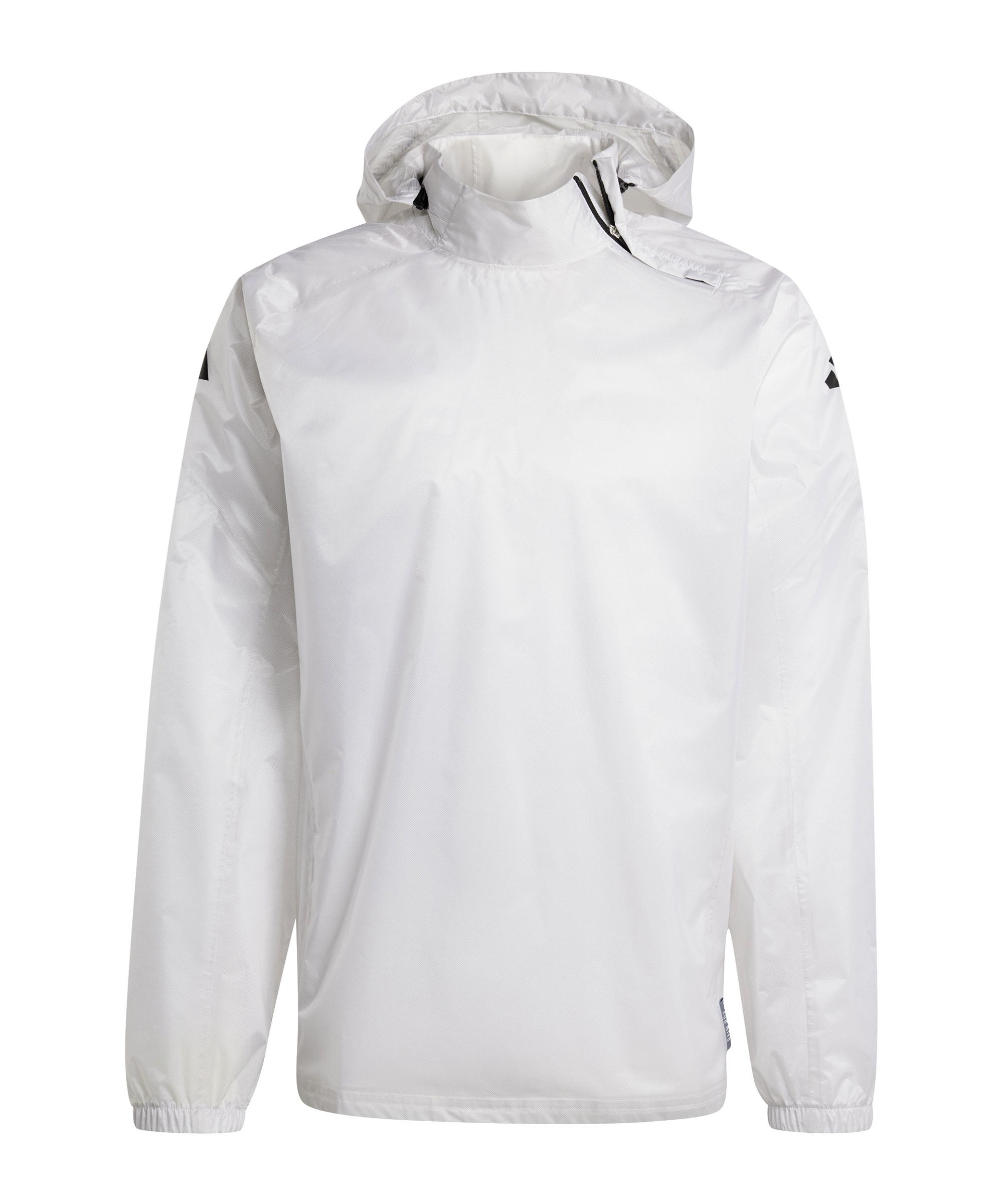 Das Shirt von adidas in Weiß ist die optimale Ausstattung mit dem Potenzial für Höchstleistungen. Das leichte, atmungsaktive und bequeme Modell überzeugt auf ganzer Linie. Ihr bekommt eine hohe Strapazierfähigkeit, einen Windschutz und einen Wasserschutz geboten. Dieses Shirt wurde geschaffen, um eure Leistung um ein Level zu erhöhen. Das Shirt lässt sich durch einen Reißverschluss schließen. Optische Unterstützung bekommt dieses langärmlige Shirt durch einen stylischen Stehkragen. Draußen sein – selbst bei Wind und Wetter – ist mit der abnehmbaren Kapuze kein Problem mehr. Produktdetails: Extras: Abnehmbare Kapuze, Kapuze Ausschnitt: Stehkragen Langärmlig Technologie: RAIN.RDY Eigenschaften: atmungsaktiv, bequem, leicht Wasserschutz, Strapazierfähig und Windschutz Material: 100% Nylon